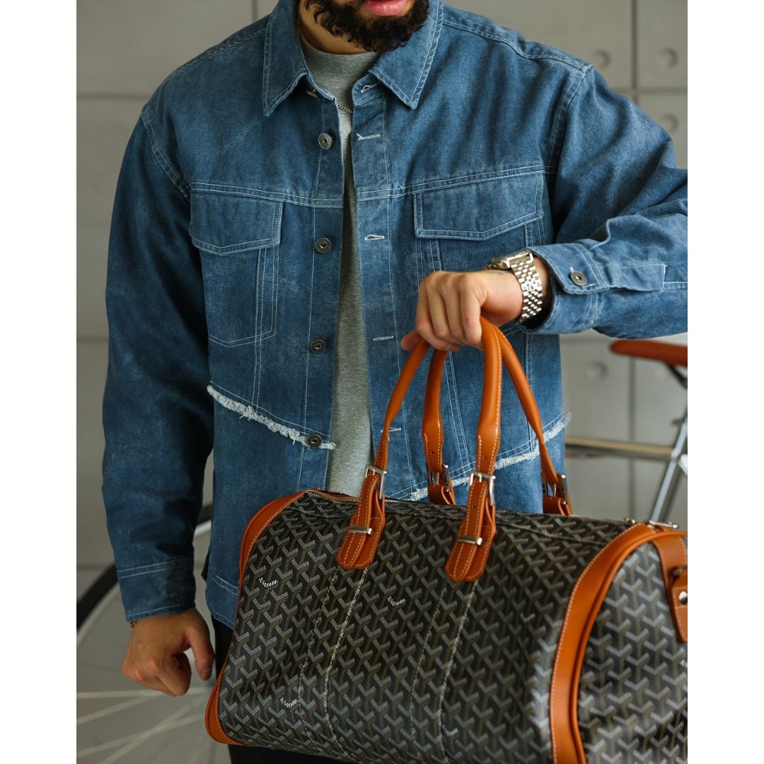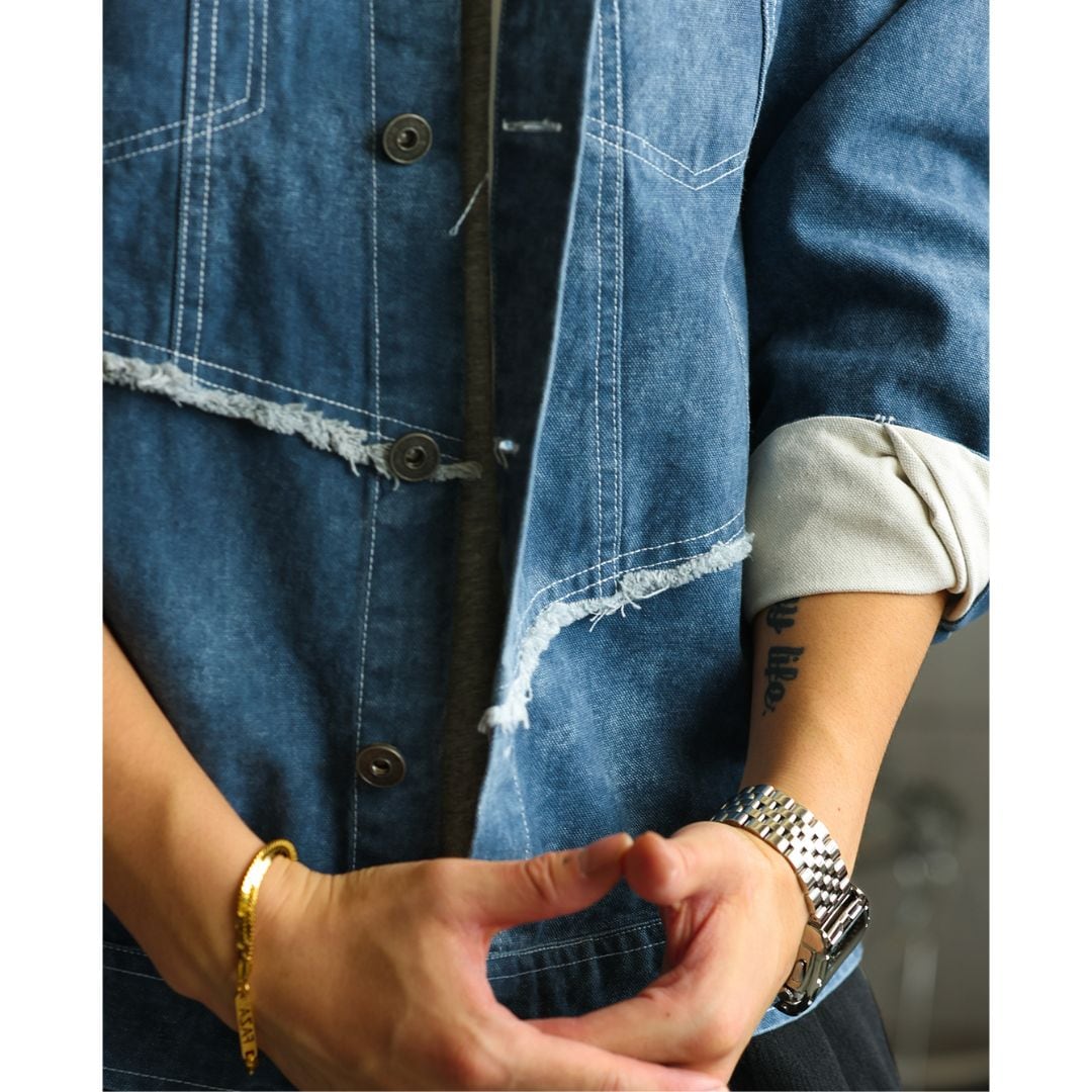 コットン100%のデニムジャケット。 ちょっと変わったデザインで人と被りにくいデザインでかつ、大人っぽくかなりおすすめの1着となっております。 程良いゆったり感が大人の雰囲気を漂わせます。 【サイズ】 M 肩幅:50cm 胸囲:104cm 着丈:66cm 袖丈:55cm L 肩幅:51.5cm 胸囲:108cm 着丈:68cm 袖丈:56cm XL 肩幅:53cm 胸囲:112cm 着丈:70cm 袖丈:57cm 2XL 肩幅:54.5cm 胸囲:116cm 着丈:72cm 袖丈:58cm 3XL 肩幅:56cm 胸囲:120cm 着丈:74cm 袖丈:58cm 4XL 肩幅:57.5cm 胸囲:124cm 着丈:75cm 袖丈:60cm ※海外製品につき1〜3㎝程度の誤差がある場合がございます。 【素材・カラー】 素材 コットン カラー ブルー 【お届けについて】 こちらの商品は海外より直接発送となるため、ご決済から通常2〜3週間前後での発送となります。 北海道・沖縄・離島につきましては別途お時間がかかりますのでご了承ください。 ※ご注文の混雑状況や商品の在庫状況により4週間以上かかる場合もございますので予めご了承ください。 その際には、こちらからメールにてご連絡させていただきます。 【注意事項】 システムの都合上及びお取り寄せ先の状況により在庫を確保できない場合は、 ご注文をキャンセルさせていただく可能性がございます。 予めご了承ください。 輸入品の為日本製とは検品基準が異なり、新品未使用品でもごく僅かな汚れや傷がある場合がございます。 ご理解の上ご購入ください。 デバイスや撮影の環境等で実物と色合いが多少異なる場合がございます。予めご了承ください。 イメージ違いやサイズ交換等、お客様のご都合よる返品・交換は対応できかねます。 【梱包について】 環境に配慮し、簡易梱包にてお届けさせていただいております。 ※ご購入前にSHOP ABOUTを必ずお読みください。 https://official.linkth.shop/about SHOPの人気商品はこちらから https://official.linkth.shop/categories/5046793 SHOPトップページはこちらから https://official.linkth.shop/ LINKTH公式Instagramはこちらから https://www.instagram.com/linkth_official/