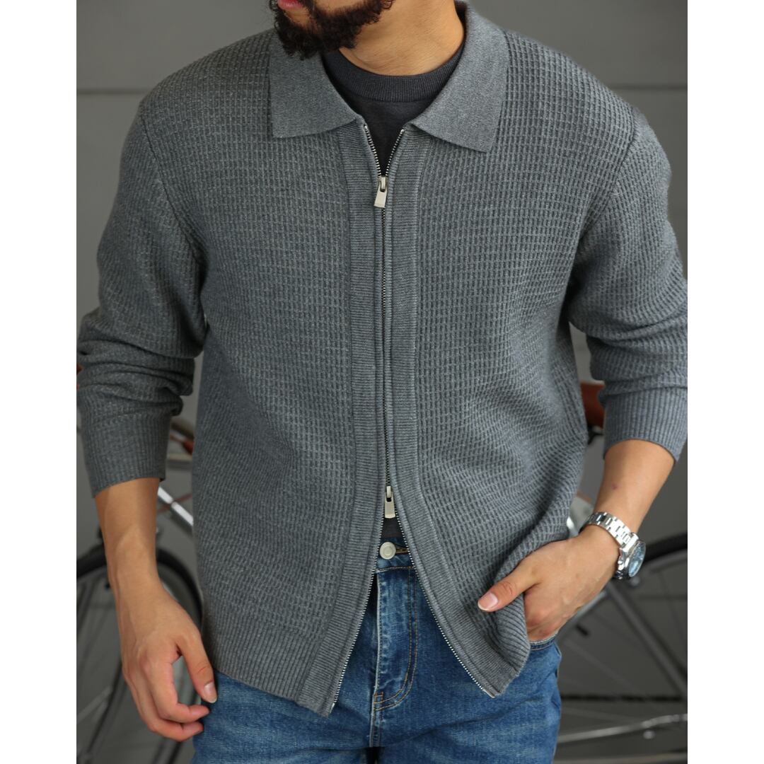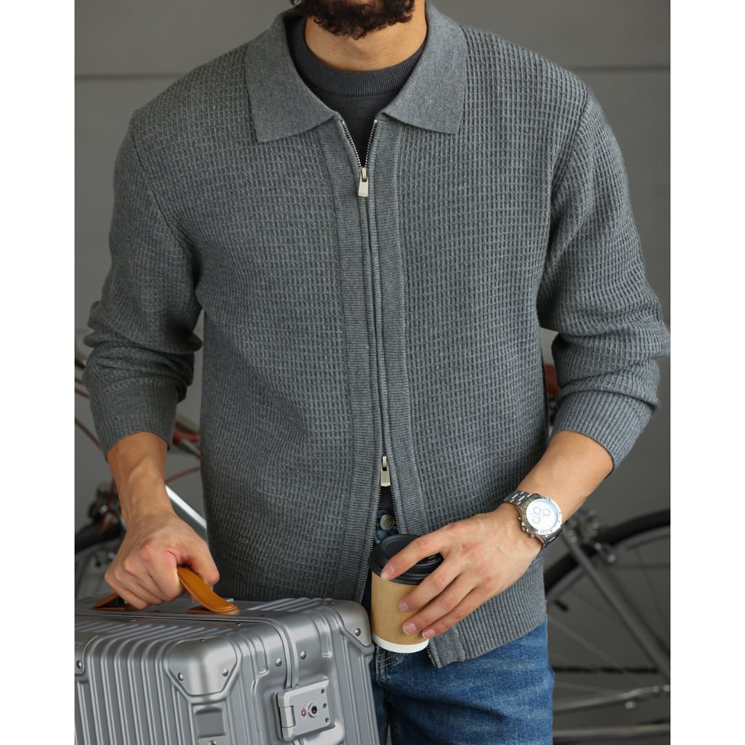 凹凸が特徴的な、着心地抜群のニット。 カジュアルなデザインながら、上品な雰囲気も併せ持ち、様々なシーンで活躍します。 ゴルフやテニスといったスポーツシーンはもちろん、普段使いにも最適。 ジップアップのデザインは、温度調節もしやすく、着脱もスムーズ。 【サイズ】 M 肩幅: 56cm 胸囲: 113cm 着丈: 68.5cm 袖丈: 57cm L 肩幅: 57.5cm 胸囲: 117cm 着丈: 70cm 袖丈: 58cm XL 肩幅: 59cm 胸囲: 121cm 着丈: 71.5cm 袖丈: 59cm 2XL 肩幅: 60.5cm 胸囲: 125cm 着丈: 73cm 袖丈: 60cm 3XL 肩幅: 62cm 胸囲: 129cm 着丈: 74.5cm 袖丈: 61cm 4XL 肩幅: 63.5cm 胸囲: 133cm 着丈: 76cm 袖丈: 62cm ※海外製品につき1〜3㎝程度の誤差がある場合がございます。 【素材・カラー】 素材 ポリエステル・ナイロン・コットン・シルク・ウール カラー グレー・ネイビー 【お届けについて】 こちらの商品は海外より直接発送となるため、ご決済から通常2〜3週間前後での発送となります。 北海道・沖縄・離島につきましては別途お時間がかかりますのでご了承ください。 ※ご注文の混雑状況や商品の在庫状況により4週間以上かかる場合もございますので予めご了承ください。 その際には、こちらからメールにてご連絡させていただきます。 【注意事項】 システムの都合上及びお取り寄せ先の状況により在庫を確保できない場合は、 ご注文をキャンセルさせていただく可能性がございます。 予めご了承ください。 輸入品の為日本製とは検品基準が異なり、新品未使用品でもごく僅かな汚れや傷がある場合がございます。 ご理解の上ご購入ください。 デバイスや撮影の環境等で実物と色合いが多少異なる場合がございます。予めご了承ください。 イメージ違いやサイズ交換等、お客様のご都合よる返品・交換は対応できかねます。 【梱包について】 環境に配慮し、簡易梱包にてお届けさせていただいております。 ※ご購入前にSHOP ABOUTを必ずお読みください。 https://official.linkth.shop/about SHOPの人気商品はこちらから https://official.linkth.shop/categories/5046793 SHOPトップページはこちらから https://official.linkth.shop/ LINKTH公式Instagramはこちらから https://www.instagram.com/linkth_official/