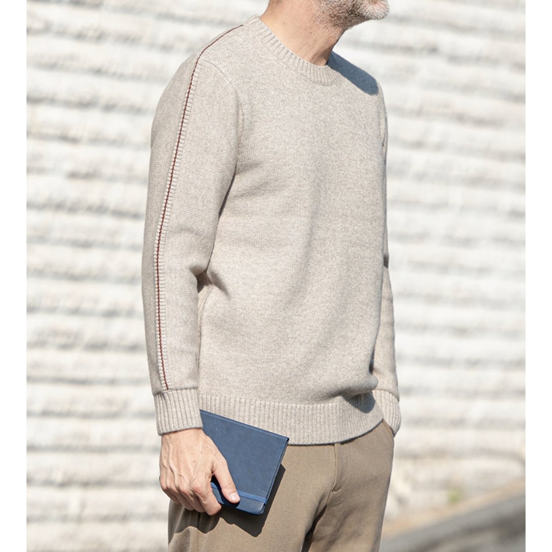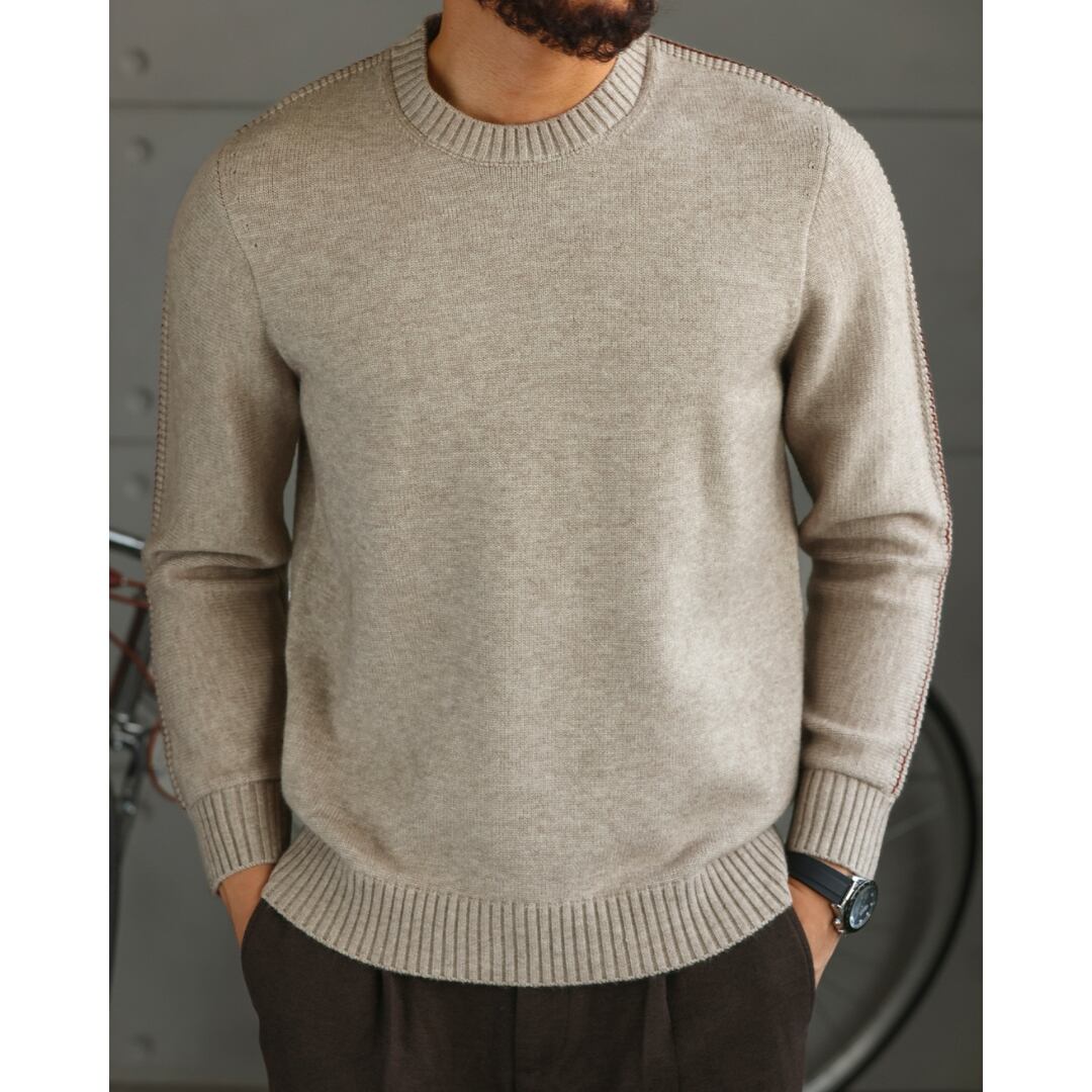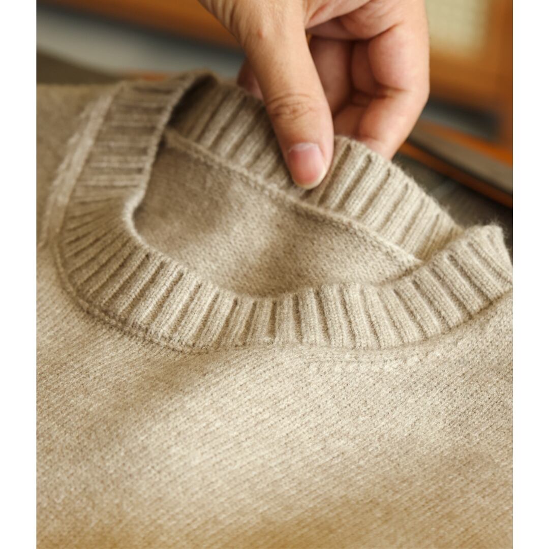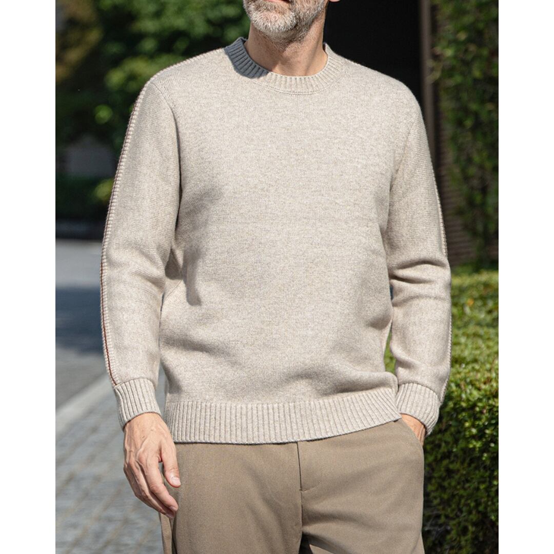 カジュアルにもきれいめにも着こなせる、クルーネックのニットプルオーバー。