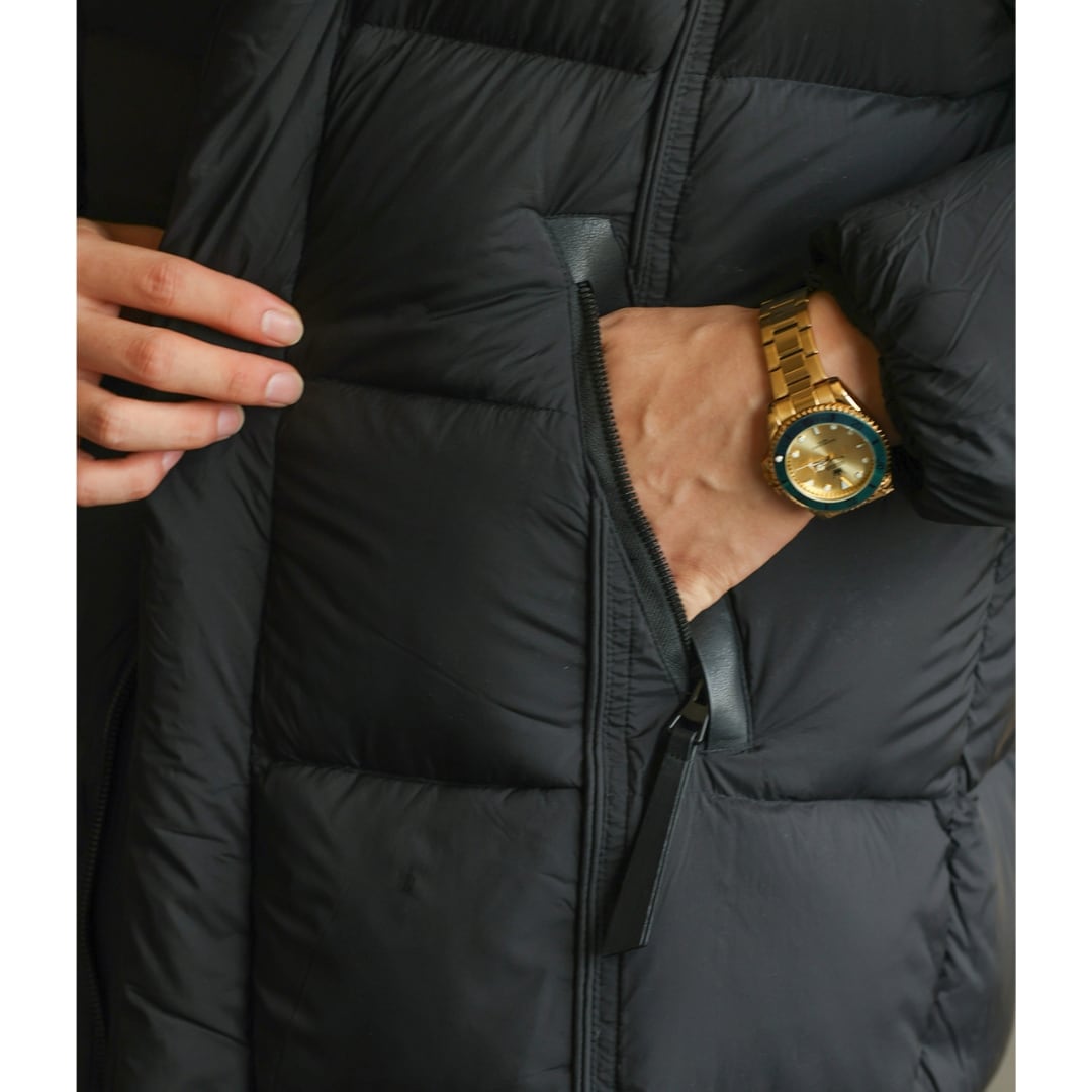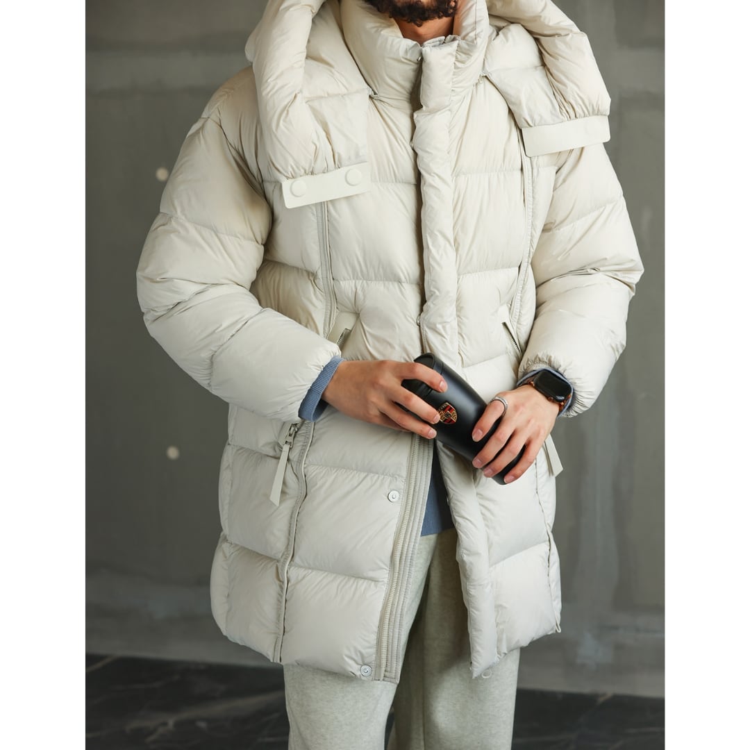 暖かさと高級感あるデザイン性を追求したフード付きミドル丈ダウンジャケット。 上品な印象を与えてくれるので、普段のコーディネートをワンランクアップさせてくれます。 気になる体型もカバーしてくれるので、スタイルアップ効果も期待できます。 また、フードが深めに設定されているのもポイントです。 冬の定番アイテムとして、ぜひワードローブに加えてください。 【サイズ】 M 肩幅:58cm 胸囲:124cm 着丈:90cm 袖丈:75cm L 肩幅:59cm 胸囲:128cm 着丈:92cm 袖丈:76cm XL 肩幅:61cm 胸囲:132cm 着丈:94cm 袖丈:77cm 2XL 肩幅:62cm 胸囲:136cm 着丈:96cm 袖丈:79cm 3XL 肩幅:63cm 胸囲:140cm 着丈:98cm 袖丈:81cm ※海外製品につき1〜3㎝程度の誤差がある場合がございます。 【素材・カラー】 素材 ナイロン ダックダウン90% カラー アイボリー・ブラック 【お届けについて】 こちらの商品は海外より直接発送となるため、ご決済から通常2〜3週間前後での発送となります。 北海道・沖縄・離島につきましては別途お時間がかかりますのでご了承ください。 ※ご注文の混雑状況や商品の在庫状況により4週間以上かかる場合もございますので予めご了承ください。 その際には、こちらからメールにてご連絡させていただきます。 【注意事項】 システムの都合上及びお取り寄せ先の状況により在庫を確保できない場合は、 ご注文をキャンセルさせていただく可能性がございます。 予めご了承ください。 輸入品の為日本製とは検品基準が異なり、新品未使用品でもごく僅かな汚れや傷がある場合がございます。 ご理解の上ご購入ください。 デバイスや撮影の環境等で実物と色合いが多少異なる場合がございます。予めご了承ください。 イメージ違いやサイズ交換等、お客様のご都合よる返品・交換は対応できかねます。 【梱包について】 環境に配慮し、簡易梱包にてお届けさせていただいております。 ※ご購入前にSHOP ABOUTを必ずお読みください。 https://official.linkth.shop/about SHOPの人気商品はこちらから https://official.linkth.shop/categories/5046793 SHOPトップページはこちらから https://official.linkth.shop/ LINKTH公式Instagramはこちらから https://www.instagram.com/linkth_official/