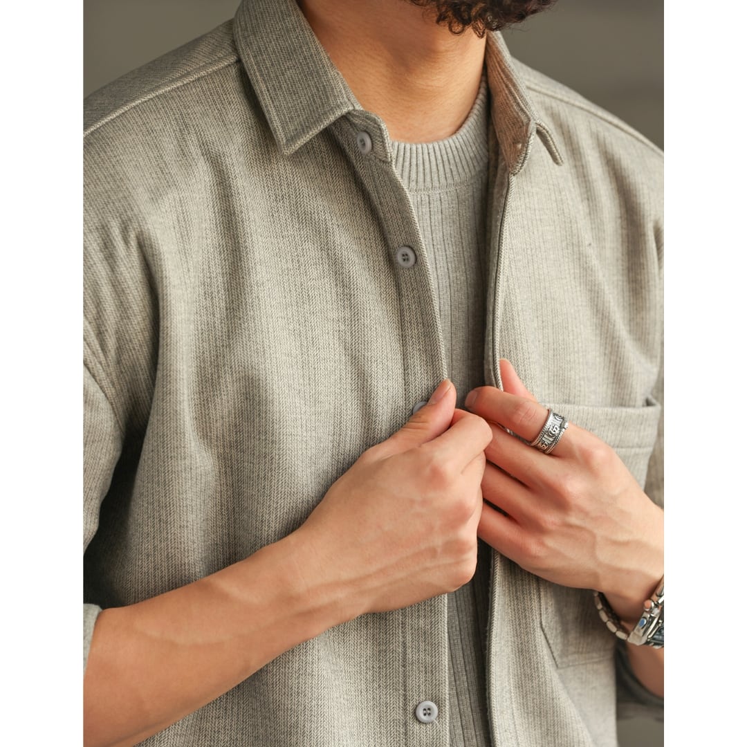 【素材感で魅せる、大人のテクスチャーシャツ】 立体感のある織り柄がシンプルながら奥行きのある表情を演出。 無駄を削ぎ落としたベーシックデザインで、カジュアルからきれいめまで自然に馴染みます。 軽やかな着心地で、一枚でも羽織りとしても使える万能アイテム。 パンツやインナーを選ばずバランス良くまとまり、幅広いシーズンで活躍する定番シャツ。 LINKTHが提案する、肩の力を抜いた大人の洗練カジュアルスタイル。 【サイズ】 M 肩幅:56cm 胸囲:116cm 着丈:71cm 袖丈:52cm L 肩幅:58cm 胸囲:118cm 着丈:73cm 袖丈:54cm XL 肩幅:60cm 胸囲:120cm 着丈:75cm 袖丈:56cm 2XL 肩幅:62cm 胸囲:122cm 着丈:77cm 袖丈:58cm 3XL 肩幅:64cm 胸囲:124cm 着丈:79cm 袖丈:60cm 4XL 肩幅:66cm 胸囲:126cm 着丈:81cm 袖丈:62cm ※海外製品につき1〜3㎝程度の誤差がある場合がございます。 【素材・カラー】 素材 ポリエステル・ビスコース・スパンデックス カラー グレー 【お届けについて】 こちらの商品は海外より直接発送となるため、ご決済から通常2〜3週間前後での発送となります。 北海道・沖縄・離島につきましては別途お時間がかかりますのでご了承ください。 ※ご注文の混雑状況や商品の在庫状況により4週間以上かかる場合もございますので予めご了承ください。 その際には、こちらからメールにてご連絡させていただきます。 【注意事項】 システムの都合上及びお取り寄せ先の状況により在庫を確保できない場合は、 ご注文をキャンセルさせていただく可能性がございます。 予めご了承ください。 輸入品の為日本製とは検品基準が異なり、新品未使用品でもごく僅かな汚れや傷がある場合がございます。 ご理解の上ご購入ください。 デバイスや撮影の環境等で実物と色合いが多少異なる場合がございます。予めご了承ください。 イメージ違いやサイズ交換等、お客様のご都合よる返品・交換は対応できかねます。 【梱包について】 環境に配慮し、簡易梱包にてお届けさせていただいております。 ※ご購入前にSHOP ABOUTを必ずお読みください。 https://official.linkth.shop/about SHOPの人気商品はこちらから https://official.linkth.shop/categories/5046793 SHOPトップページはこちらから https://official.linkth.shop/ LINKTH公式Instagramはこちらから https://www.instagram.com/linkth_official/