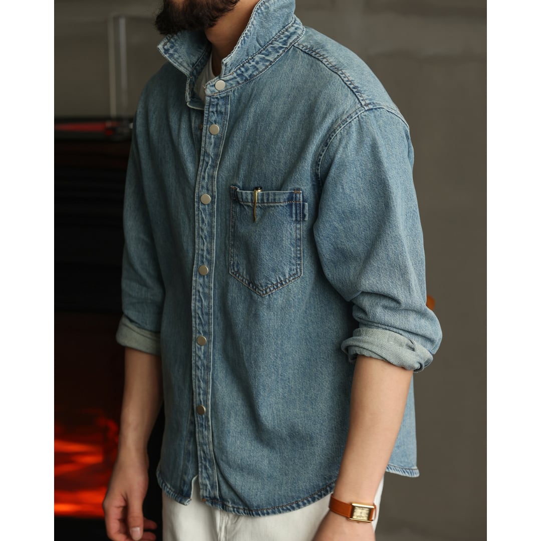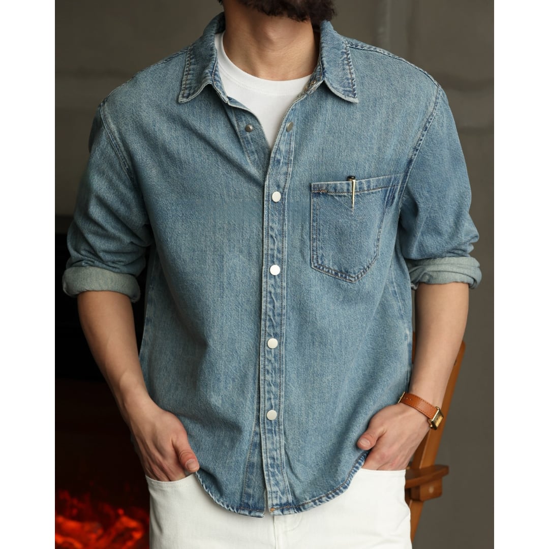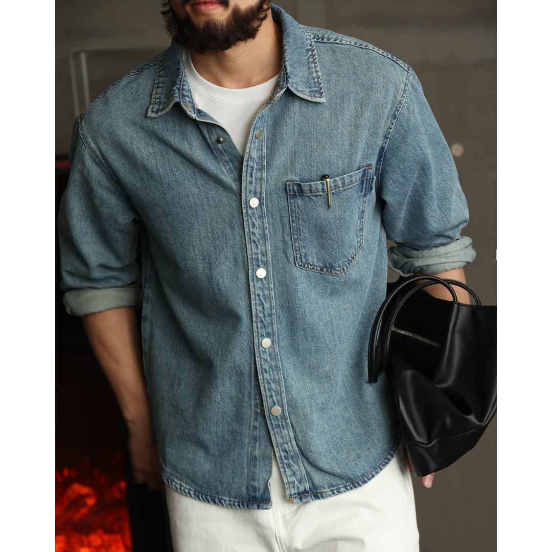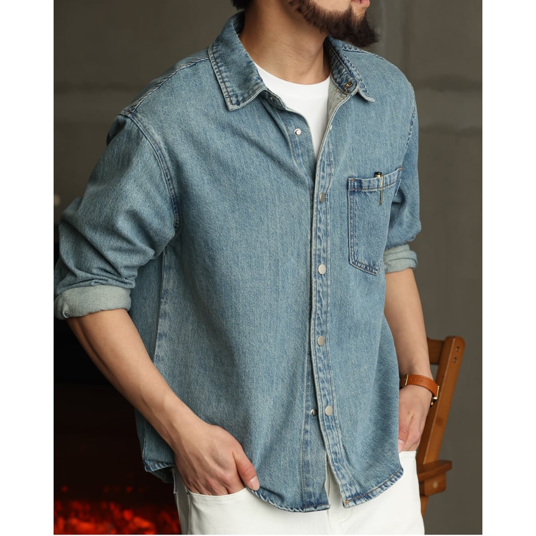 【程よく色落ちしたデニムの表情が、大人の余裕を感じさせる一枚】 ワークシャツをベースにしたシンプルなデザインで、ラフすぎず自然体で着られるデニムシャツです。 一枚で着ても、Tシャツの上に羽織ってもバランス良く決まり、季節を問わず活躍してくれます。 デニムやチノ、スラックスなど幅広いボトムスと相性が良く、きれいめにもカジュアルにも振れるのが魅力。 肩の力を抜いたスタイリングにちょうど良く馴染み、日常使いしやすい一着です。 LINKTHが提案する、肩の力を抜いて楽しめる大人のアメリカンカジュアルに馴染む一着です。 【サイズ】 M 肩幅:51cm 胸囲:110cm 着丈:71cm 袖丈:57cm L 肩幅:52.5cm 胸囲:114cm 着丈:72.5cm 袖丈:58cm XL 肩幅:54cm 胸囲:118cm 着丈:74cm 袖丈:59cm 2XL 肩幅:55.5cm 胸囲:122cm 着丈:75.5cm 袖丈:60cm 3XL 肩幅:57cm 胸囲:126cm 着丈:77cm 袖丈:61cm 4XL 肩幅:58.5cm 胸囲:130cm 着丈:78.5cm 袖丈:62cm ※海外製品につき1〜3㎝程度の誤差がある場合がございます。 【素材・カラー】 素材 コットン・リヨセル カラー ブルー 【お届けについて】 こちらの商品は海外より直接発送となるため、ご決済から通常2〜3週間前後での発送となります。 北海道・沖縄・離島につきましては別途お時間がかかりますのでご了承ください。 ※ご注文の混雑状況や商品の在庫状況により4週間以上かかる場合もございますので予めご了承ください。 その際には、こちらからメールにてご連絡させていただきます。 【注意事項】 システムの都合上及びお取り寄せ先の状況により在庫を確保できない場合は、 ご注文をキャンセルさせていただく可能性がございます。 予めご了承ください。 輸入品の為日本製とは検品基準が異なり、新品未使用品でもごく僅かな汚れや傷がある場合がございます。 ご理解の上ご購入ください。 デバイスや撮影の環境等で実物と色合いが多少異なる場合がございます。予めご了承ください。 イメージ違いやサイズ交換等、お客様のご都合よる返品・交換は対応できかねます。 【梱包について】 環境に配慮し、簡易梱包にてお届けさせていただいております。 ※ご購入前にSHOP ABOUTを必ずお読みください。 https://official.linkth.shop/about SHOPの人気商品はこちらから https://official.linkth.shop/categories/5046793 SHOPトップページはこちらから https://official.linkth.shop/ LINKTH公式Instagramはこちらから https://www.instagram.com/linkth_official/