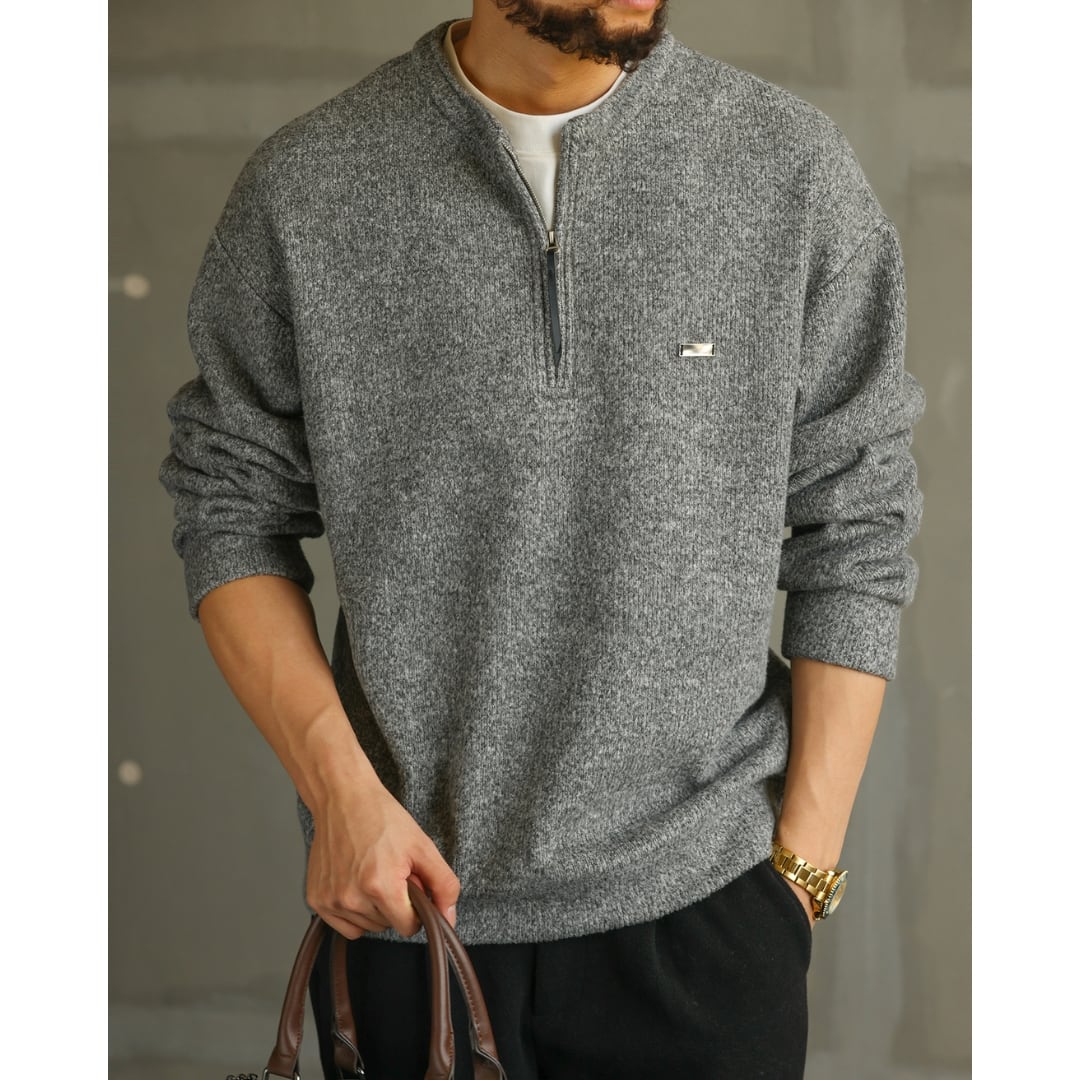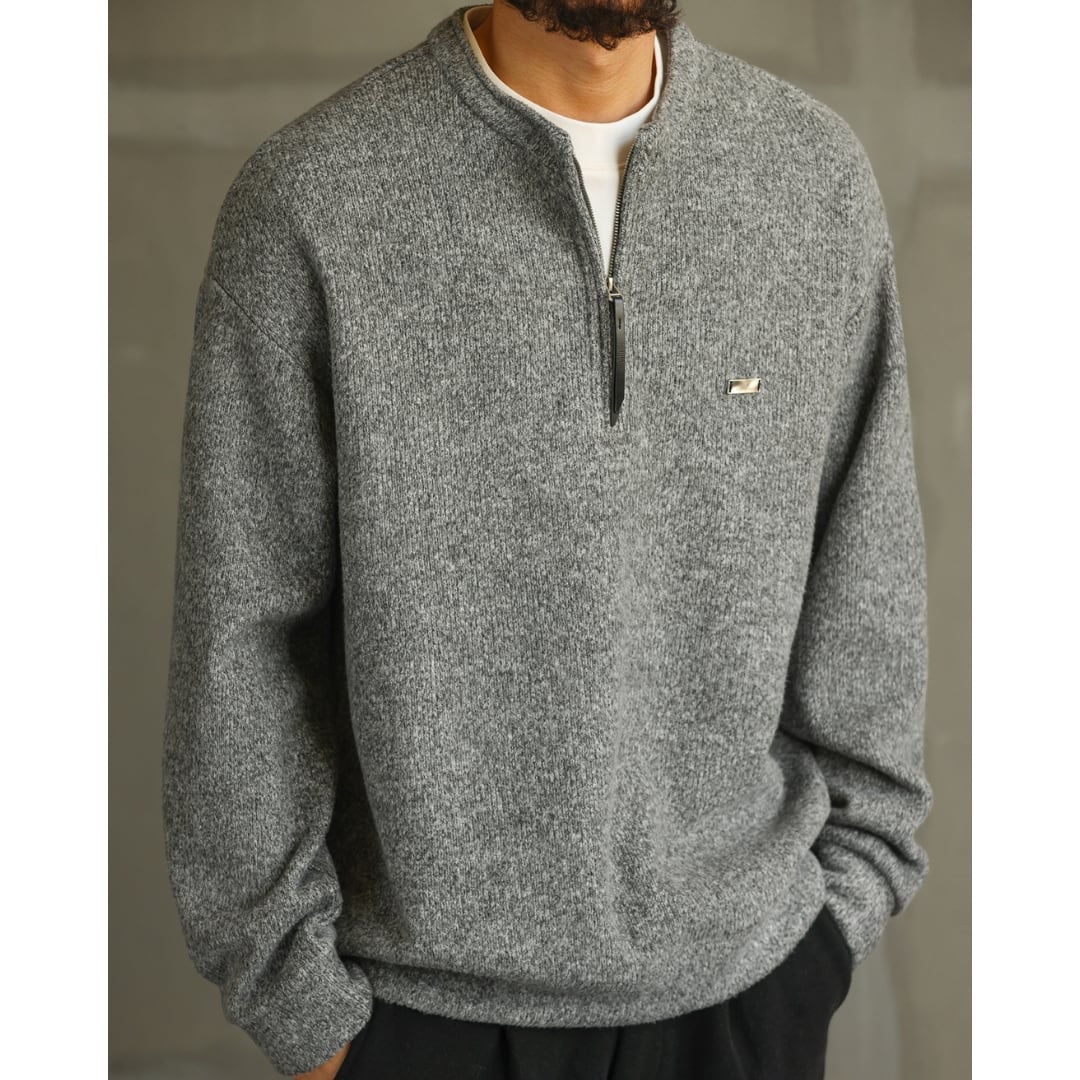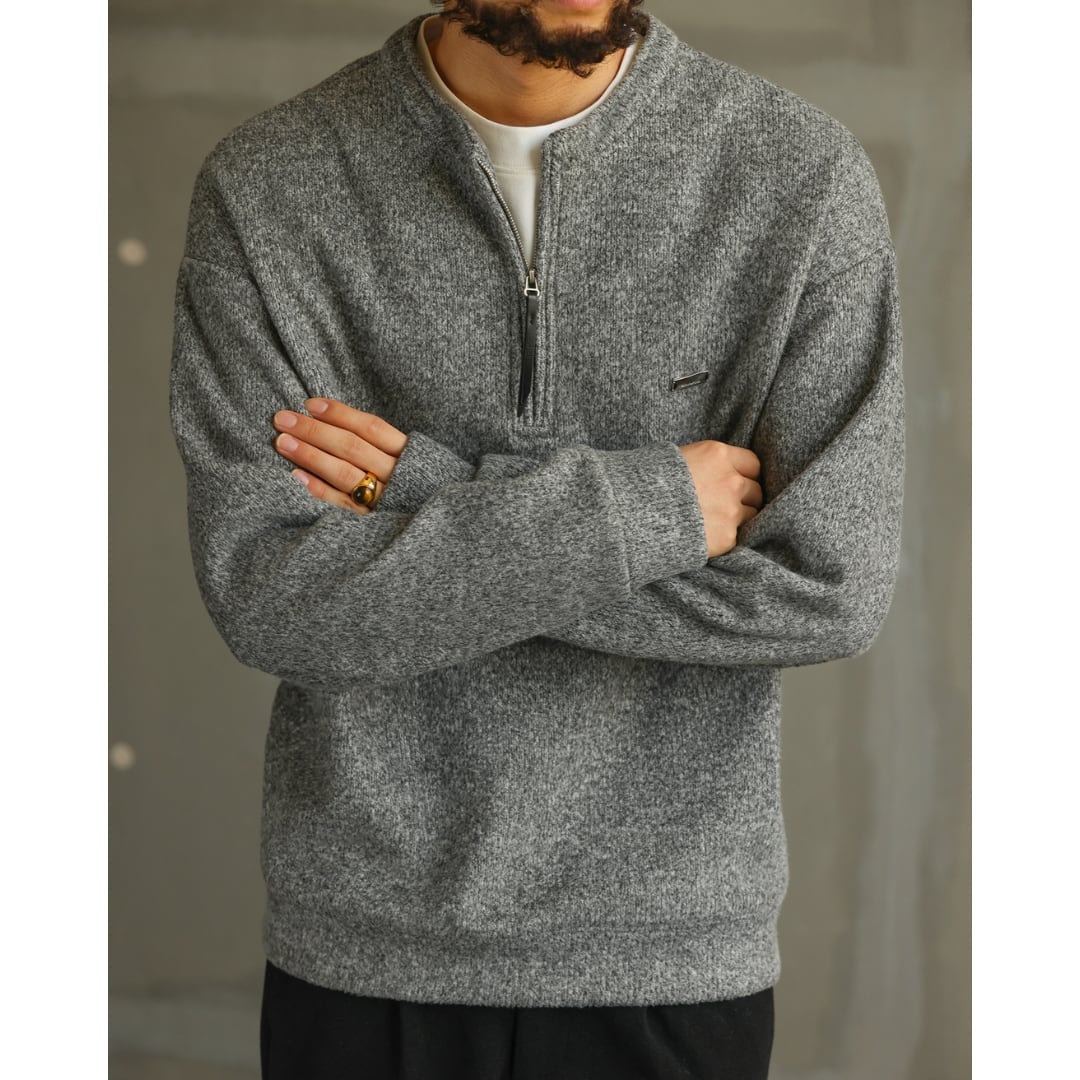 ゆったりとしたシルエットが魅力のハーフジップニット。