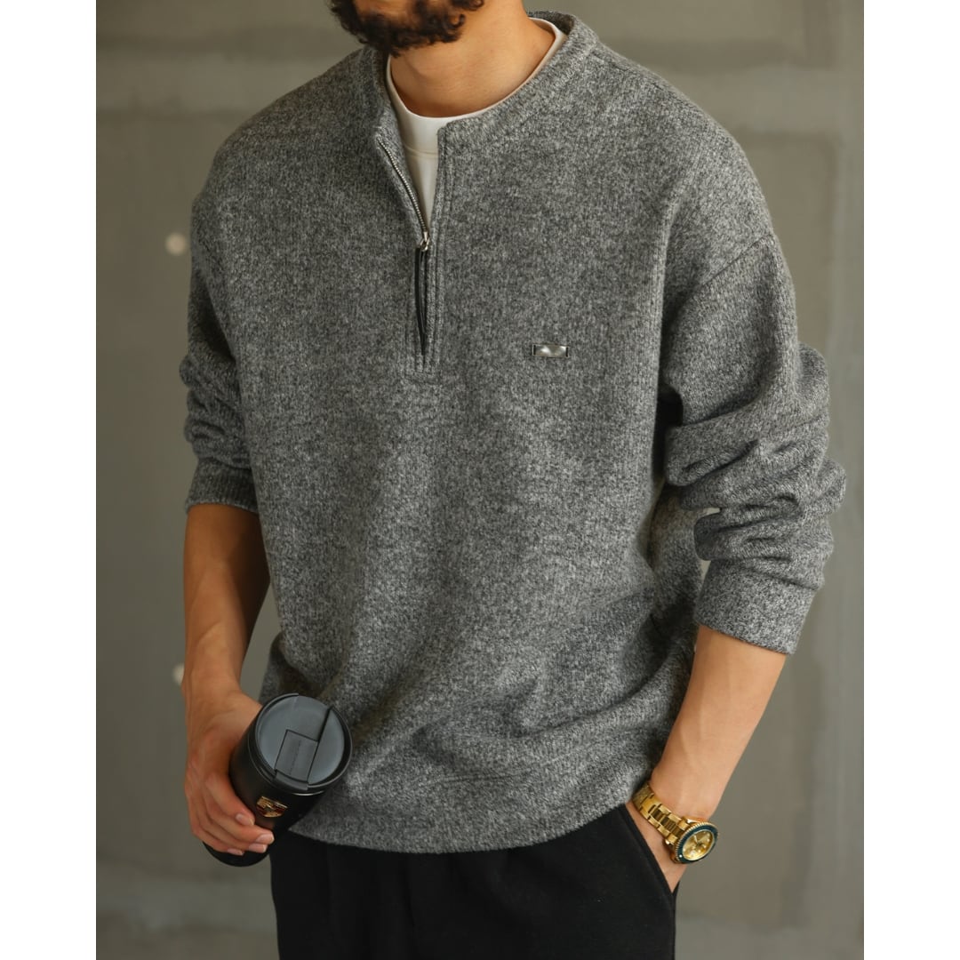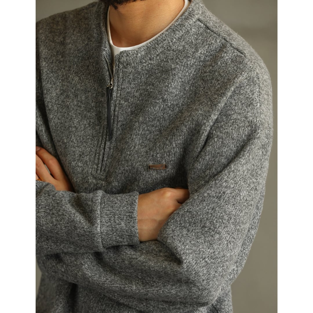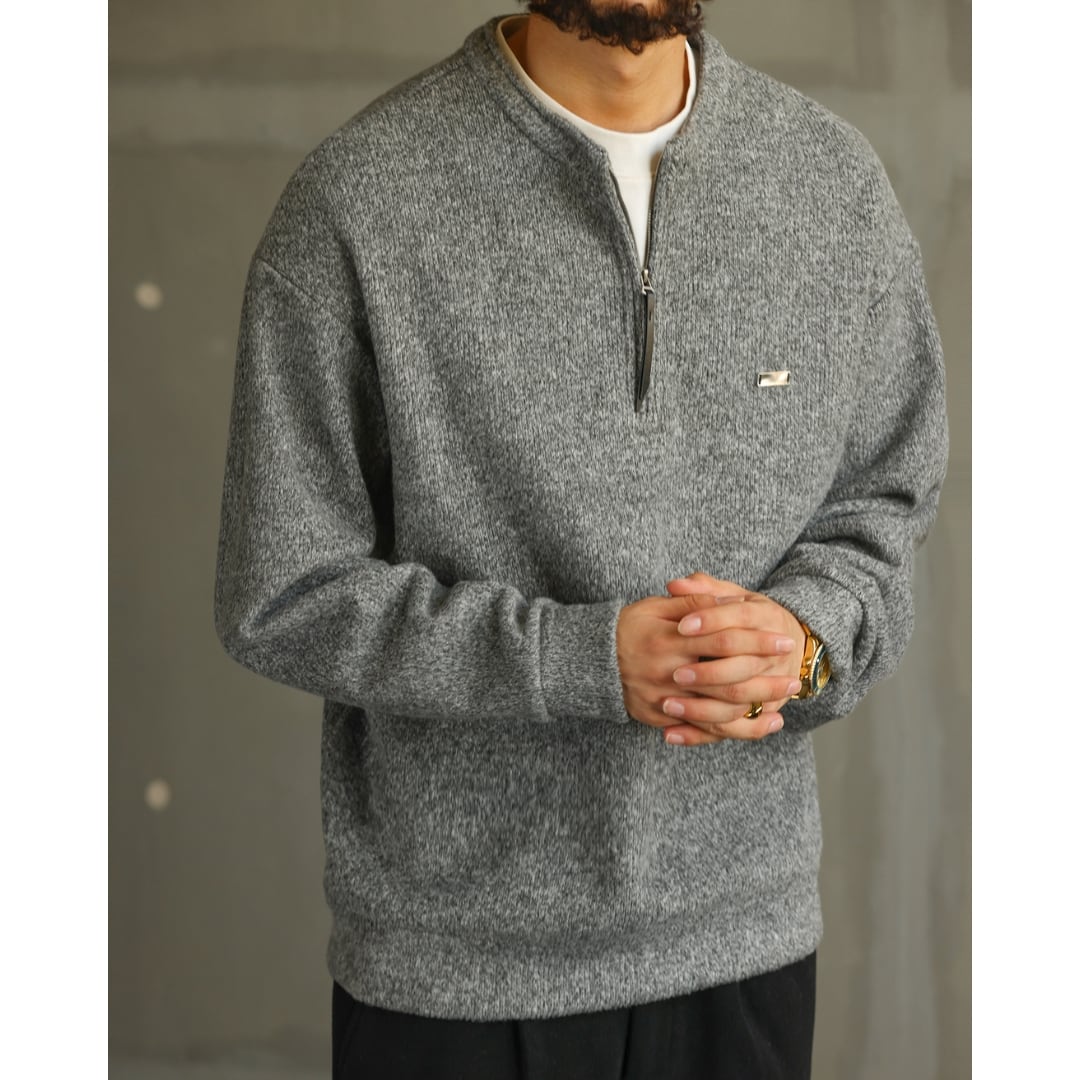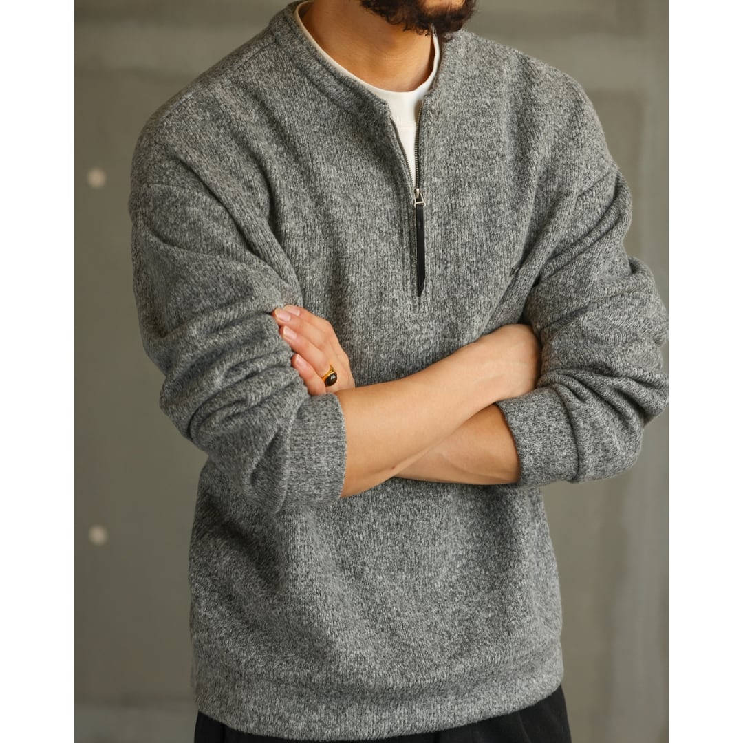 ゆったりとしたシルエットが魅力のハーフジップニット。