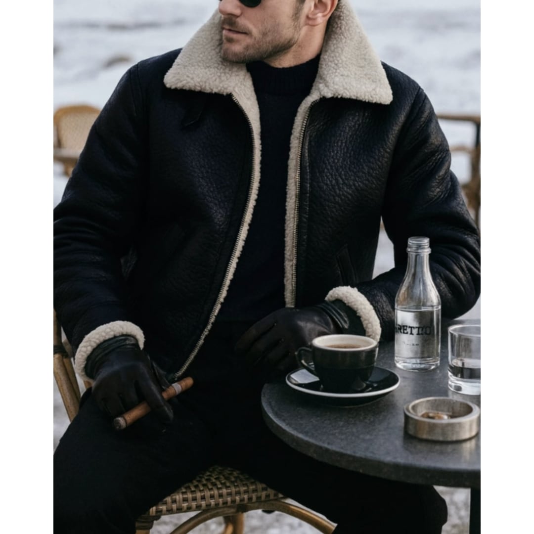 コーデの主役級のフェイクレザーボアジャケット。