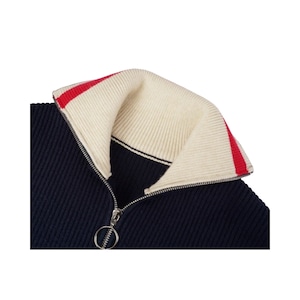 ハーフジップのデザインが特徴的な長袖ニット。