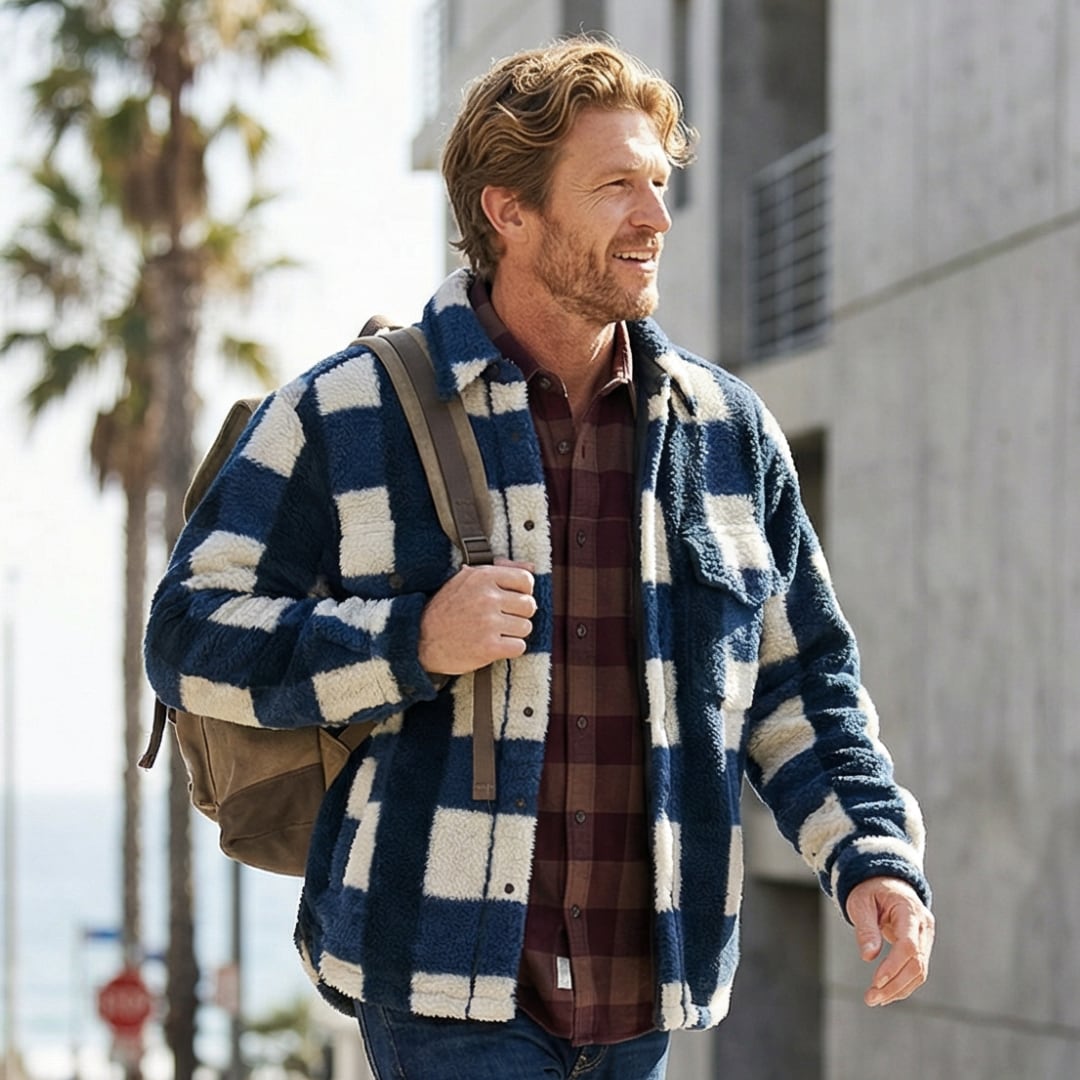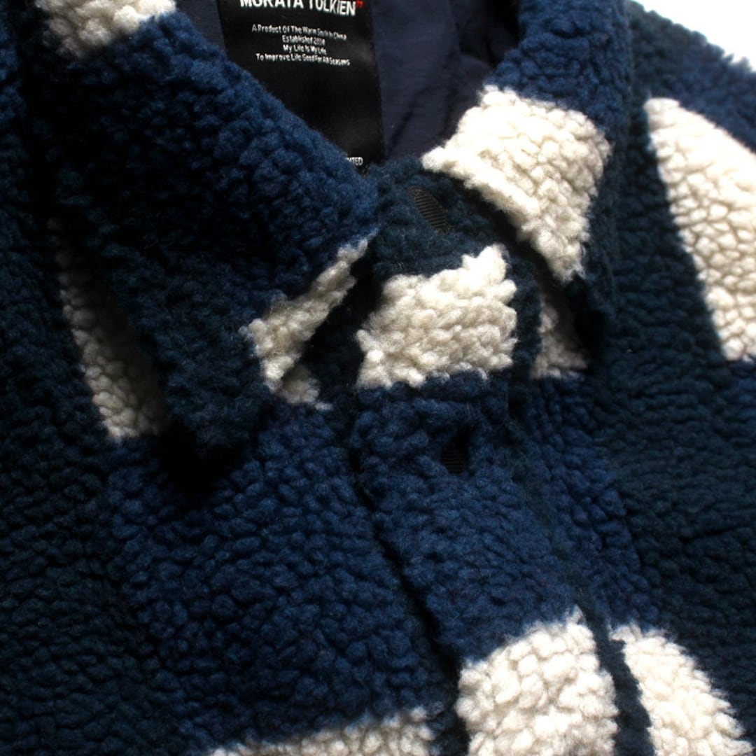 ふっくらとしたボア素材に、大胆なチェック柄を落とし込んだシャツジャケット。