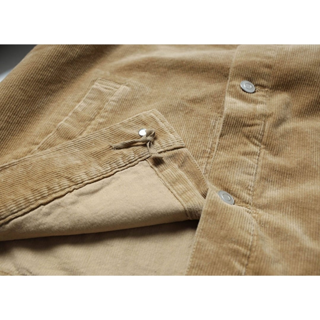 【コーデュロイの素材感と無骨なデザインが魅力の、大人のためのトラッカージャケット】 程よく肉厚なコーデュロイ素材を使用した、存在感のあるトラッカージャケット。 クラシックなワークテイストをベースにしながらも、落ち着いたカラーとシルエットで大人が着やすいバランスに仕上げています。 コーデュロイ特有の畝感がスタイリングに表情を加え、シンプルなインナーに合わせるだけでコーデが完成。 デニムやチノ、ミリタリーパンツなどとも相性が良く、アメカジスタイルの主役になる一着です。 スナップボタン仕様で着脱もしやすく、軽めのアウターとして秋口から春先まで長く活躍。 シャツ感覚でも羽織れるため、インナー次第でロングシーズン使えます。 ワーク・ミリタリー・カジュアル、どの要素にも自然にハマる万能ジャケットです。 LINKTHが提案する、肩の力を抜いて楽しめる大人のアメリカンカジュアルに馴染む一着です。 【サイズ】 S 肩幅:54.5cm 胸囲:115cm 着丈:68cm 袖丈:56cm M 肩幅:56.5cm 胸囲:120cm 着丈:70cm 袖丈:57.5cm L 肩幅:58.5cm 胸囲:124cm 着丈:72cm 袖丈:59.5cm XL 肩幅:62cm 胸囲:133cm 着丈:74cm 袖丈:60.5cm ※海外製品につき1〜3㎝程度の誤差がある場合がございます。 【素材・カラー】 素材 コットン カラー カーキ・ブラック 【お届けについて】 こちらの商品は海外より直接発送となるため、ご決済から通常2〜3週間前後での発送となります。 北海道・沖縄・離島につきましては別途お時間がかかりますのでご了承ください。 ※ご注文の混雑状況や商品の在庫状況により4週間以上かかる場合もございますので予めご了承ください。 その際には、こちらからメールにてご連絡させていただきます。 【注意事項】 システムの都合上及びお取り寄せ先の状況により在庫を確保できない場合は、 ご注文をキャンセルさせていただく可能性がございます。 予めご了承ください。 輸入品の為日本製とは検品基準が異なり、新品未使用品でもごく僅かな汚れや傷がある場合がございます。 ご理解の上ご購入ください。 デバイスや撮影の環境等で実物と色合いが多少異なる場合がございます。予めご了承ください。 イメージ違いやサイズ交換等、お客様のご都合よる返品・交換は対応できかねます。 【梱包について】 環境に配慮し、簡易梱包にてお届けさせていただいております。 ※ご購入前にSHOP ABOUTを必ずお読みください。 https://official.linkth.shop/about SHOPの人気商品はこちらから https://official.linkth.shop/categories/5046793 SHOPトップページはこちらから https://official.linkth.shop/ LINKTH公式Instagramはこちらから https://www.instagram.com/linkth_official/