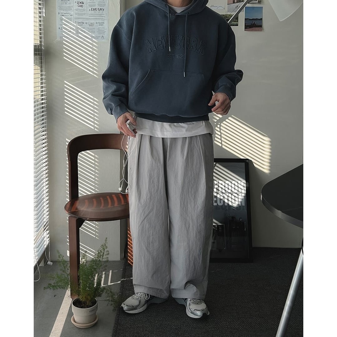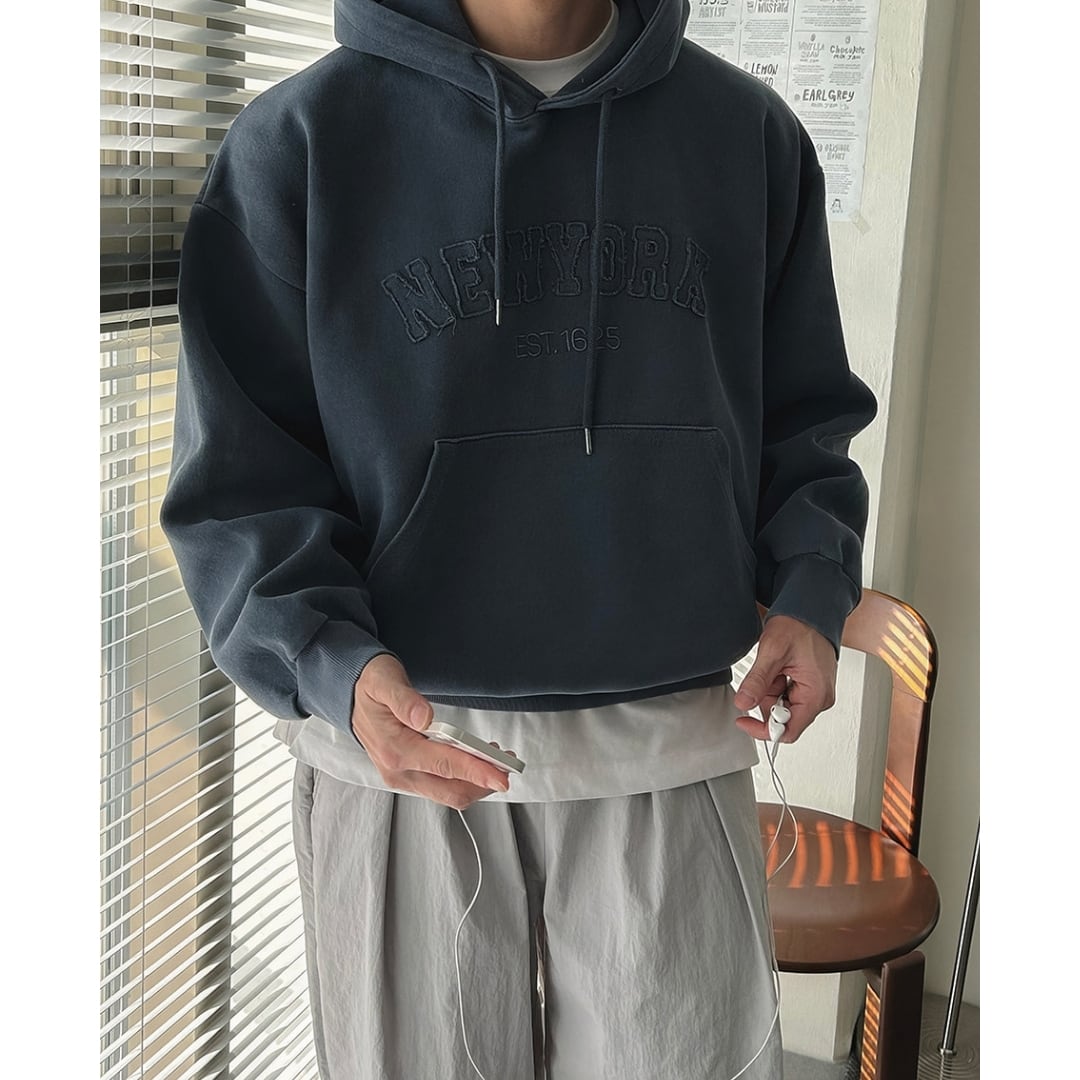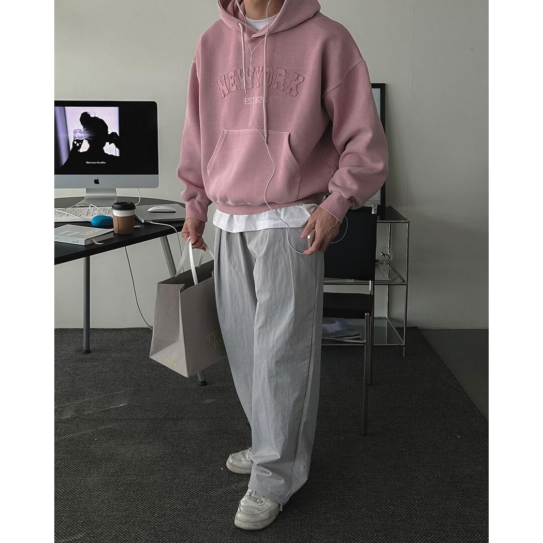 デニム、チノ、スラックスまで幅広く合わせやすく、コーデに悩まない万能パーカーです。
