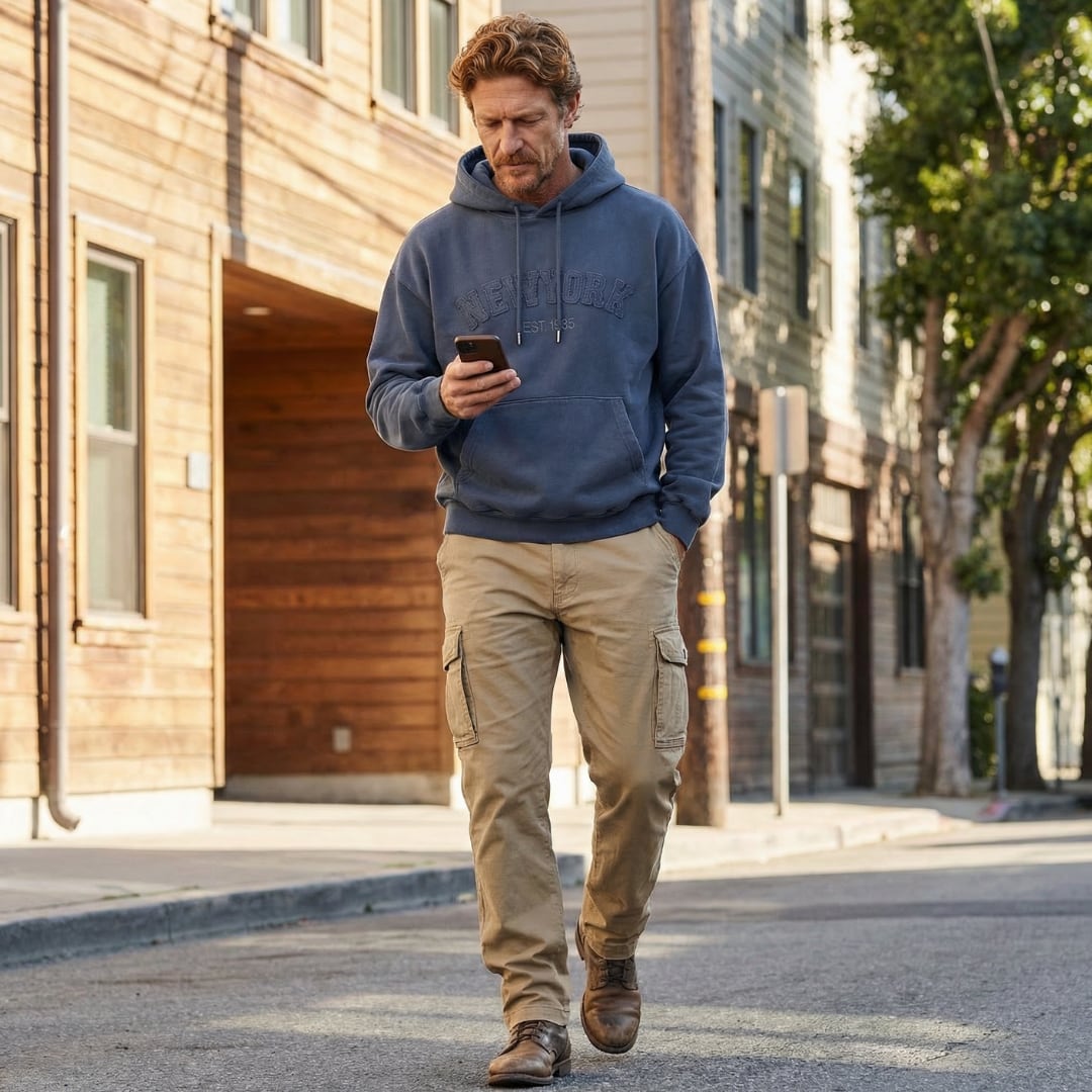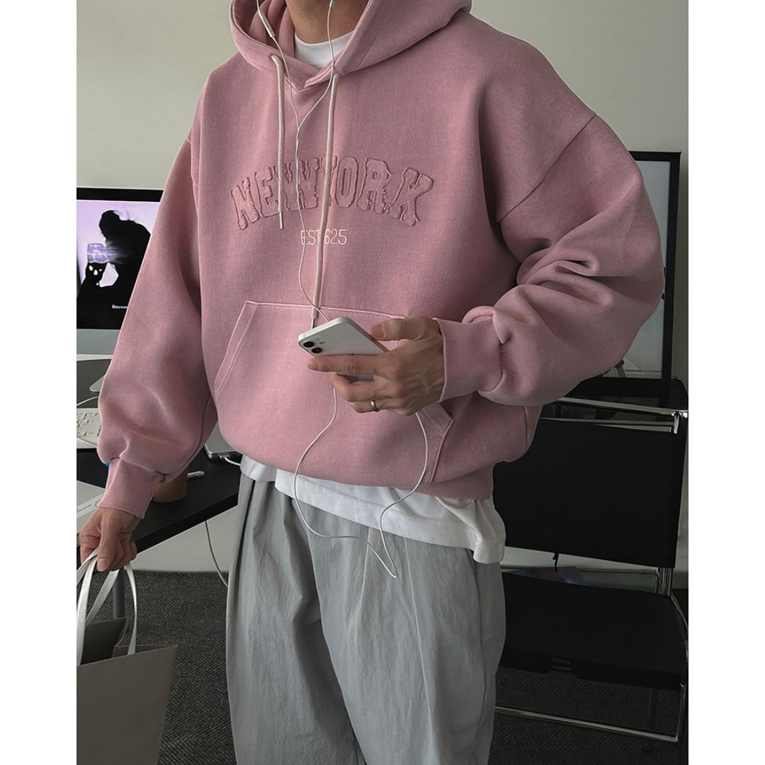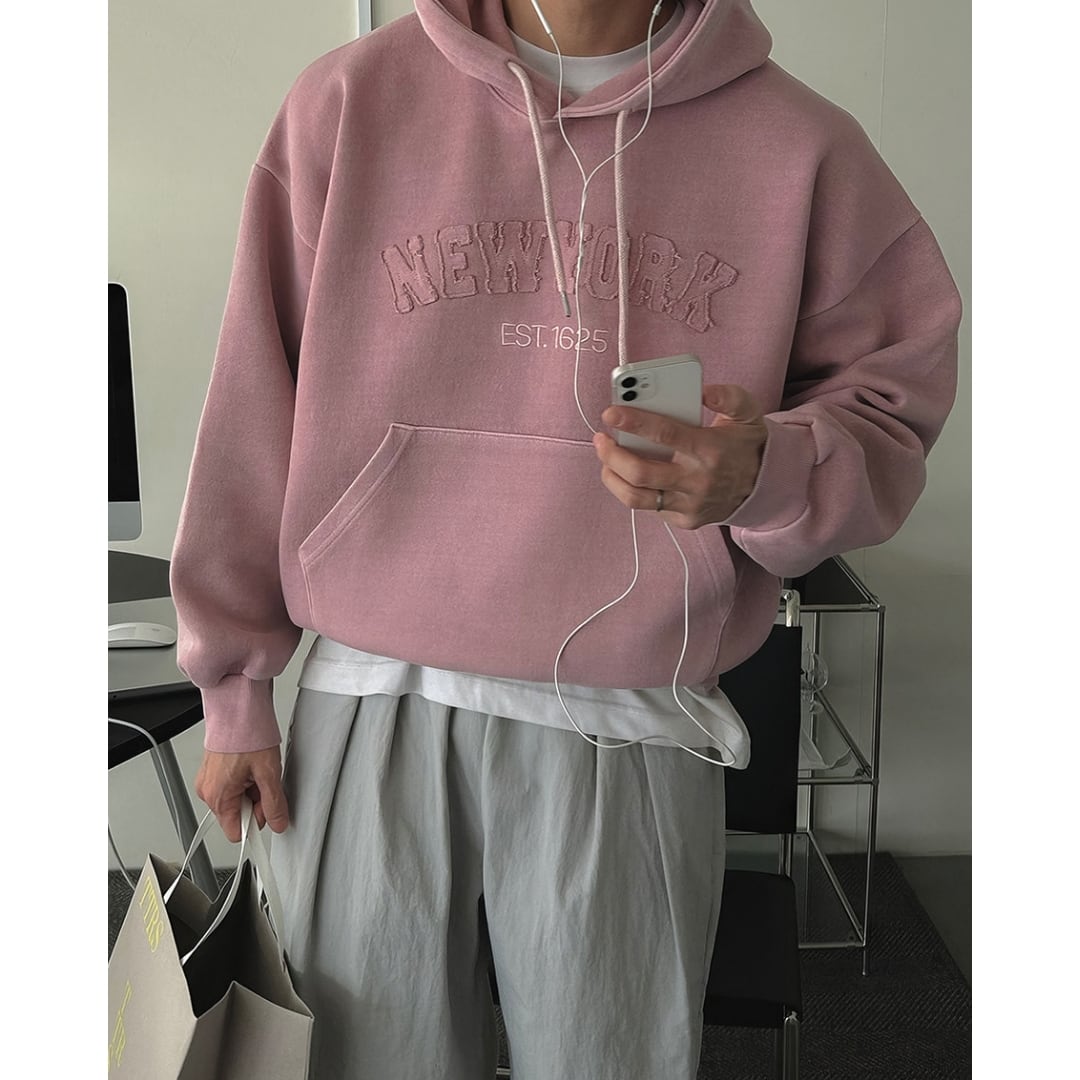 デニム、チノ、スラックスまで幅広く合わせやすく、コーデに悩まない万能パーカーです。