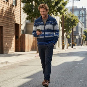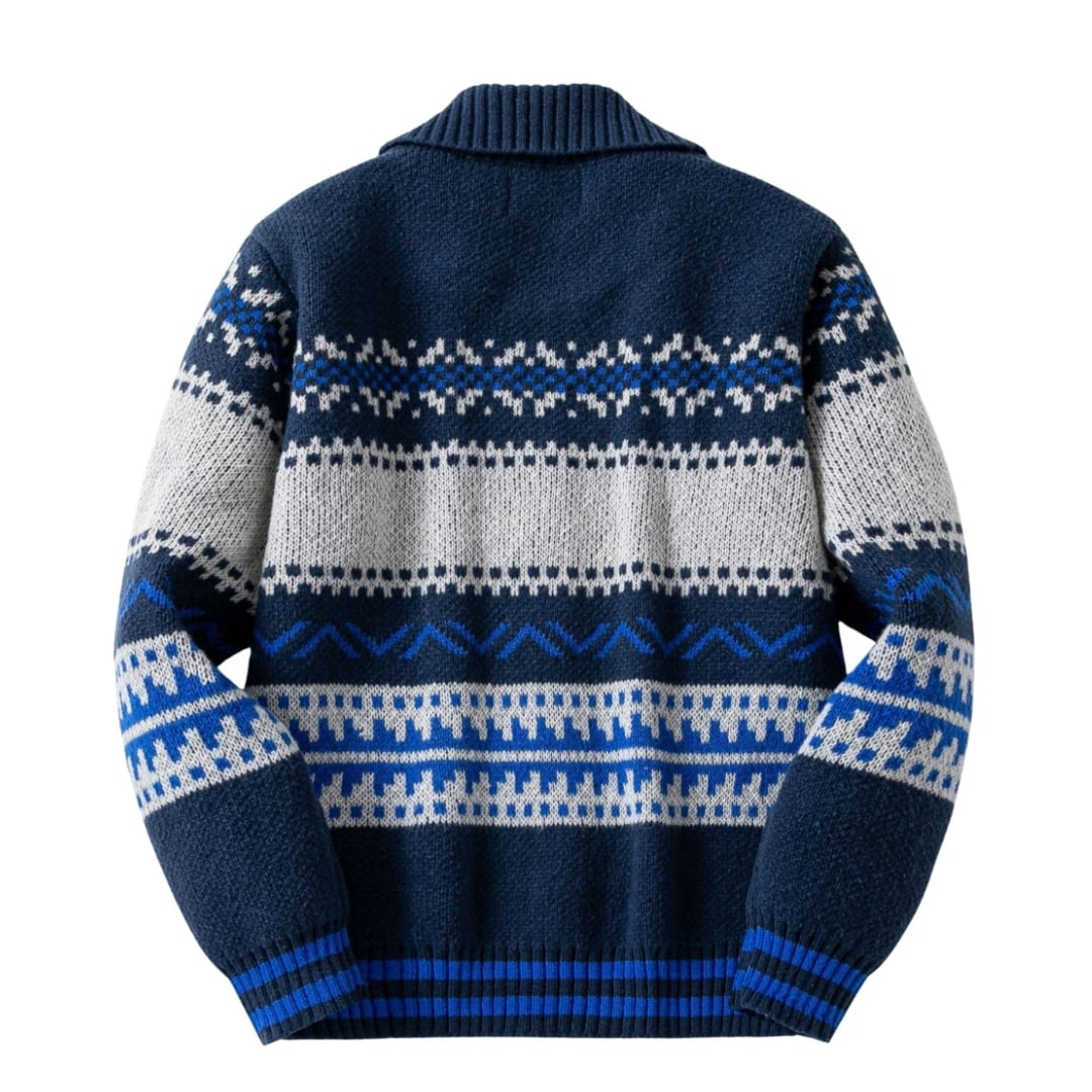 【ジャガード柄の表情とジップデザインが映える、大人のためのニットアウター】
