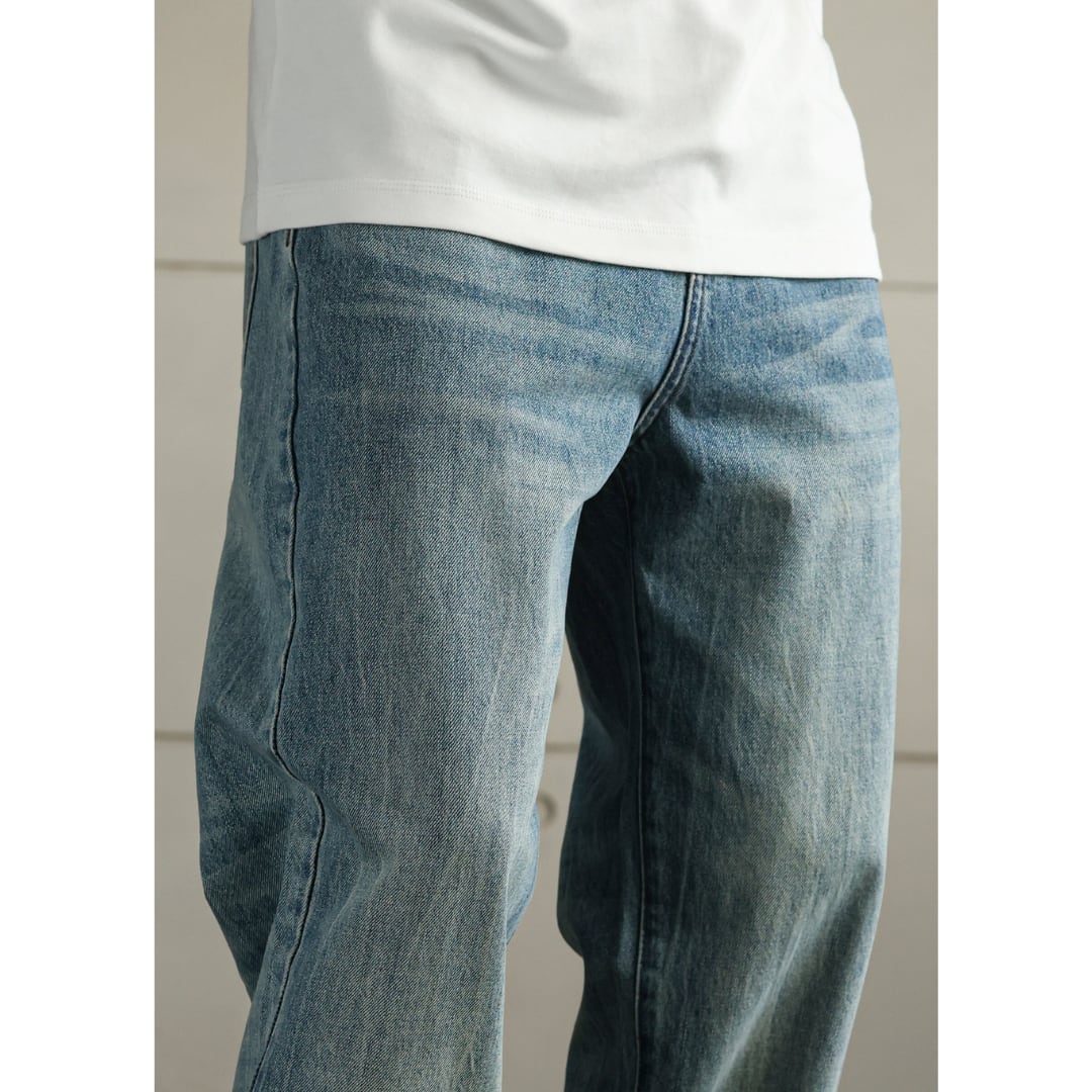 【穿き込んだような自然な色落ち】 やり過ぎないフェード感。 大人が穿ける、落ち着いたヴィンテージ表情。 細すぎず太すぎない、 自然に馴染むストレートシルエット。 トップスを選ばず、 スウェット・シャツ・ロンTまで幅広く対応。 ラフなのに、だらしなくならない。 日常にちょうどいい一本。 LINKTHが提案する、力を抜いたアメリカンスタイル。 【サイズ】 29 ウエスト:76.3cm ヒップ:104.2cm パンツ丈:102cm 裾周り:21.55cm 30 ウエスト:78.8cm ヒップ:106.7cm パンツ丈:103cm 裾周り:21.9cm 31 ウエスト:81.3cm ヒップ:109.2cm パンツ丈:104cm 裾周り:22.25cm 32 ウエスト:83.8cm ヒップ:111.7cm パンツ丈:105cm 裾周り:22.6cm 33 ウエスト:86.3cm ヒップ:114.2cm パンツ丈:106cm 裾周り:22.95cm 34 ウエスト:88.8cm ヒップ:116.7cm パンツ丈:106cm 裾周り:23.3cm 36 ウエスト:93.8cm ヒップ:121.7cm パンツ丈:107cm 裾周り:24cm ※海外製品につき1〜3㎝程度の誤差がある場合がございます。 【素材・カラー】 素材 コットン・再生セルロース・ポリエステル カラー ワンカラー 【お届けについて】 こちらの商品は海外より直接発送となるため、ご決済から通常2〜3週間前後での発送となります。 北海道・沖縄・離島につきましては別途お時間がかかりますのでご了承ください。 ※ご注文の混雑状況や商品の在庫状況により4週間以上かかる場合もございますので予めご了承ください。 その際には、こちらからメールにてご連絡させていただきます。 【注意事項】 システムの都合上及びお取り寄せ先の状況により在庫を確保できない場合は、 ご注文をキャンセルさせていただく可能性がございます。 予めご了承ください。 輸入品の為日本製とは検品基準が異なり、新品未使用品でもごく僅かな汚れや傷がある場合がございます。 ご理解の上ご購入ください。 デバイスや撮影の環境等で実物と色合いが多少異なる場合がございます。予めご了承ください。 イメージ違いやサイズ交換等、お客様のご都合よる返品・交換は対応できかねます。 【梱包について】 環境に配慮し、簡易梱包にてお届けさせていただいております。 ※ご購入前にSHOP ABOUTを必ずお読みください。 https://official.linkth.shop/about LINKTH人気商品はこちらから https://official.linkth.shop/categories/5046793 LINKTHトップページはこちらから https://official.linkth.shop/ LINKTH公式Instagramはこちらから https://www.instagram.com/linkth_official/