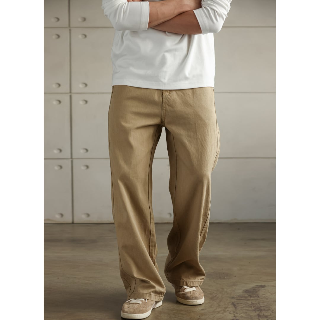 【自然体で穿ける、大人の定番チノ】 程よい厚みと柔らかさを持つ上質コットン素材。 肌当たりが良く、長時間でも快適な穿き心地。 ゆとりを持たせたリラックスストレートシルエット。 脚のラインを拾わず、自然で大人らしい印象。 動きやすさと安定感を両立した設計。 日常から外出までストレスなく対応。 シンプルで合わせやすい万能デザイン。 Tシャツからニット、シャツまで幅広くマッチ。 LINKTHが提案する、力を抜いても整うアメリカンスタイル。 【サイズ】 29 ウエスト:73.5cm ヒップ:109cm パンツ丈:104cm 裾周り:25.3cm 30 ウエスト:76cm ヒップ:111.5cm パンツ丈:105cm 裾周り:25.65cm 31 ウエスト:78.5cm ヒップ:114cm パンツ丈:106cm 裾周り:26cm 32 ウエスト:81cm ヒップ:116.5cm パンツ丈:107cm 裾周り:26.35cm 33 ウエスト:83.5cm ヒップ:119cm パンツ丈:108cm 裾周り:26.7cm 34 ウエスト:86cm ヒップ:121.5cm パンツ丈:108cm 裾周り:27.05cm 36 ウエスト:91cm ヒップ:126.5cm パンツ丈:109cm 裾周り:27.75cm ※海外製品につき1〜3㎝程度の誤差がある場合がございます。 【素材・カラー】 素材 コットン・リヨセル カラー カーキ 【お届けについて】 こちらの商品は海外より直接発送となるため、ご決済から通常2〜3週間前後での発送となります。 北海道・沖縄・離島につきましては別途お時間がかかりますのでご了承ください。 ※ご注文の混雑状況や商品の在庫状況により4週間以上かかる場合もございますので予めご了承ください。 その際には、こちらからメールにてご連絡させていただきます。 【注意事項】 システムの都合上及びお取り寄せ先の状況により在庫を確保できない場合は、 ご注文をキャンセルさせていただく可能性がございます。 予めご了承ください。 輸入品の為日本製とは検品基準が異なり、新品未使用品でもごく僅かな汚れや傷がある場合がございます。 ご理解の上ご購入ください。 デバイスや撮影の環境等で実物と色合いが多少異なる場合がございます。予めご了承ください。 イメージ違いやサイズ交換等、お客様のご都合よる返品・交換は対応できかねます。 【梱包について】 環境に配慮し、簡易梱包にてお届けさせていただいております。 ※ご購入前にSHOP ABOUTを必ずお読みください。 https://official.linkth.shop/about LINKTH人気商品はこちらから https://official.linkth.shop/categories/5046793 LINKTHトップページはこちらから https://official.linkth.shop/ LINKTH公式Instagramはこちらから https://www.instagram.com/linkth_official/