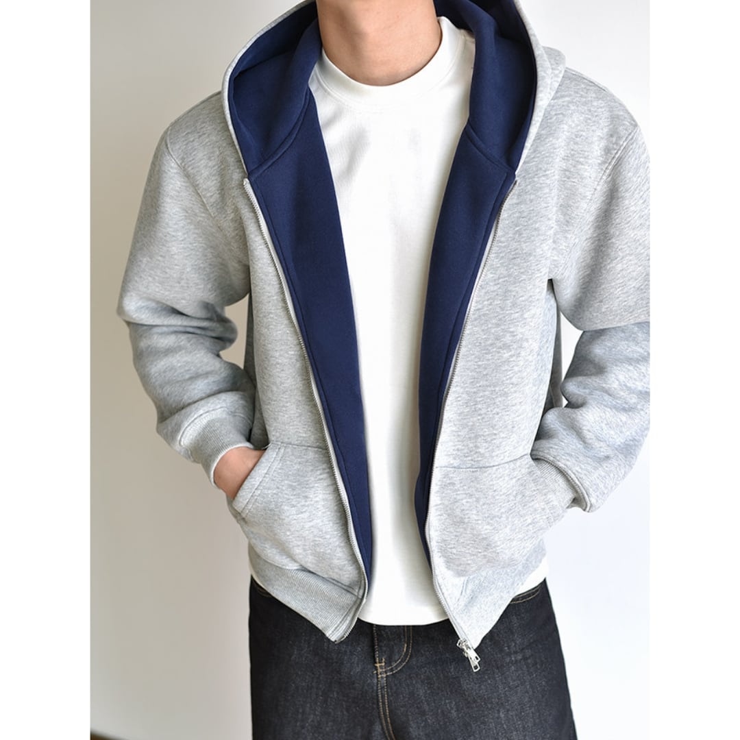 【軽さの中に、奥行きを】 表は柔らかな杢グレー。 内側には深みのあるネイビーを配したダブルフェイス仕様。 さりげない配色が、シンプルに立体感を与える一着。 程よくゆとりを持たせたシルエット。 羽織るだけで自然に整う、大人のリラックスバランス。 ソフトで滑らかなスウェット素材。 重すぎず、長時間でも快適な着心地をキープ。 前を開けても、閉じても成立する設計。 日常・移動・軽アウターまで幅広く対応。 LINKTHが提案する、肩の力を抜いて楽しめる大人のアメリカンカジュアル。 【サイズ】 M 肩幅:55cm 胸囲:120cm 着丈:64cm 袖丈:57cm L 肩幅:56.6cm 胸囲:124cm 着丈:66cm 袖丈:58cm XL 肩幅:58cm 胸囲:128cm 着丈:68cm 袖丈:59cm 2XL 肩幅:59.5cm 胸囲:132cm 着丈:70cm 袖丈:60cm 3XL 肩幅:61cm 胸囲:136cm 着丈:72cm 袖丈:61cm ※海外製品につき1〜3㎝程度の誤差がある場合がございます。 【素材・カラー】 素材 コットン・ポリエステル カラー グレー・ブラック 【お届けについて】 こちらの商品は海外より直接発送となるため、ご決済から通常2〜3週間前後での発送となります。 北海道・沖縄・離島につきましては別途お時間がかかりますのでご了承ください。 ※ご注文の混雑状況や商品の在庫状況により4週間以上かかる場合もございますので予めご了承ください。 その際には、こちらからメールにてご連絡させていただきます。 【注意事項】 システムの都合上及びお取り寄せ先の状況により在庫を確保できない場合は、 ご注文をキャンセルさせていただく可能性がございます。 予めご了承ください。 輸入品の為日本製とは検品基準が異なり、新品未使用品でもごく僅かな汚れや傷がある場合がございます。 ご理解の上ご購入ください。 デバイスや撮影の環境等で実物と色合いが多少異なる場合がございます。予めご了承ください。 イメージ違いやサイズ交換等、お客様のご都合よる返品・交換は対応できかねます。 【梱包について】 環境に配慮し、簡易梱包にてお届けさせていただいております。 ※ご購入前にSHOP ABOUTを必ずお読みください。 https://official.linkth.shop/about SHOPの人気商品はこちらから https://official.linkth.shop/categories/5046793 SHOPトップページはこちらから https://official.linkth.shop/ LINKTH公式Instagramはこちらから https://www.instagram.com/linkth_official/