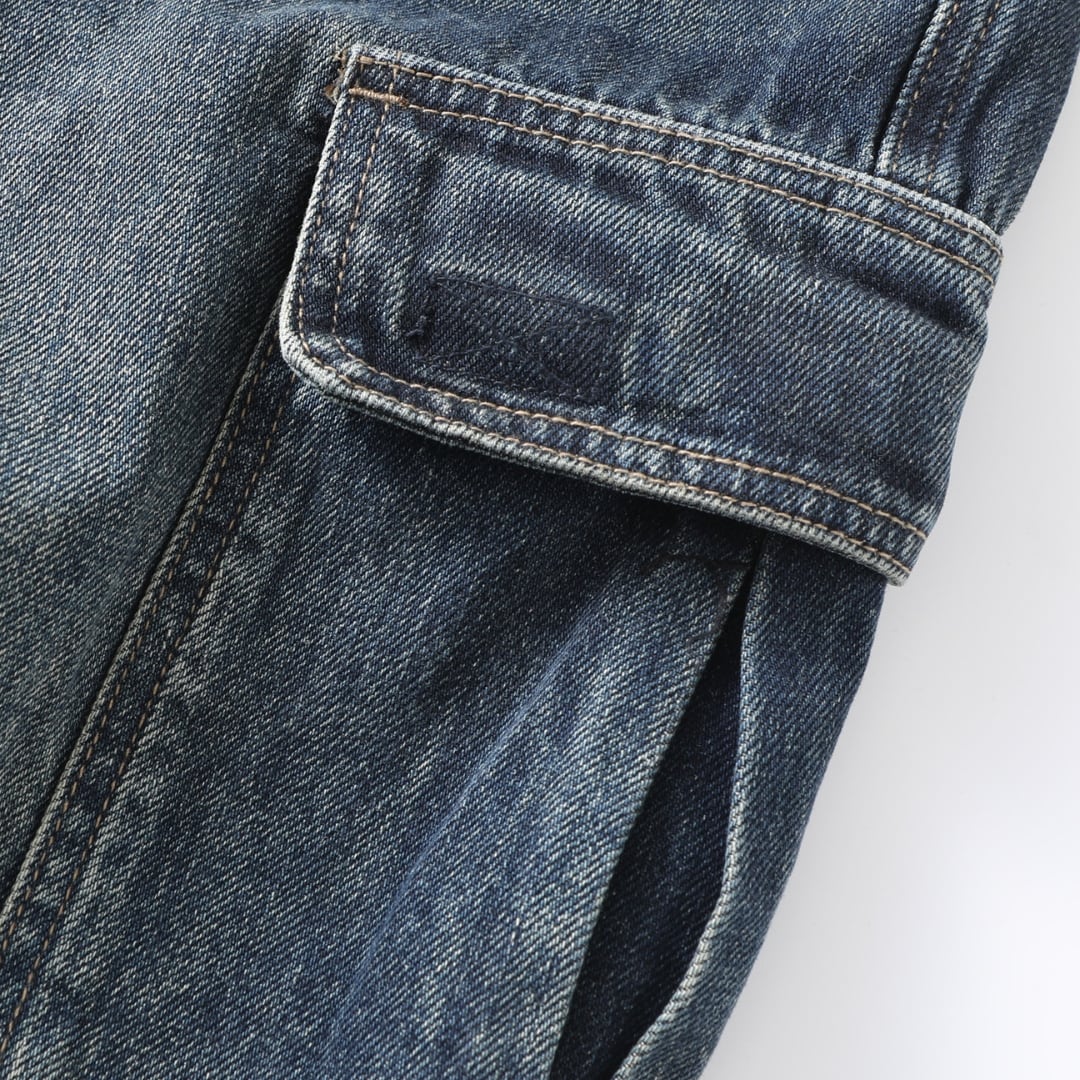 【存在感のあるカーゴデニム】 程よく色落ちしたヴィンテージ加工。 穿くだけで雰囲気の出る一本。 両サイドには立体的なカーゴポケット。 実用性とデザイン性を兼ね備えた仕様。 適度にゆとりのあるシルエット。 動きやすくラフに穿けるバランス。 Tシャツやスウェット、シャツとも好相性。 シンプルなトップスでもスタイルが完成。 スニーカーやブーツとも合わせやすい コーデの主役になるデニムパンツ。 LINKTHが提案する、肩の力を抜いて楽しめる大人のアメリカンカジュアルに馴染む一着です。 【サイズ】 28 ウエスト:71cm ヒップ:100cm パンツ丈:98cm 裾周り:20cm 29 ウエスト:74.5cm ヒップ:101cm パンツ丈:99cm 裾周り:20.5cm 30 ウエスト:77cm ヒップ:103cm パンツ丈:100cm 裾周り:21cm 31 ウエスト:80cm ヒップ:106cm パンツ丈:101cm 裾周り:21cm 32 ウエスト:83cm ヒップ:108cm パンツ丈:102cm 裾周り:21.5cm 33 ウエスト:86cm ヒップ:110cm パンツ丈:103cm 裾周り:22cm 34 ウエスト:90cm ヒップ:113cm パンツ丈:104cm 裾周り:22.5cm 36 ウエスト:93cm ヒップ:118cm パンツ丈:105cm 裾周り:23cm 38 ウエスト:99cm ヒップ:123cm パンツ丈:106cm 裾周り:23.5cm 40 ウエスト:102cm ヒップ:128cm パンツ丈:107cm 裾周り:24cm 42 ウエスト:106cm ヒップ:132cm パンツ丈:107cm 裾周り:24.5cm ※海外製品につき1〜3㎝程度の誤差がある場合がございます。 【素材・カラー】 素材 コットン・ビスコース・ポリエステル カラー ワンカラー 【お届けについて】 こちらの商品は海外より直接発送となるため、ご決済から通常2〜3週間前後での発送となります。 北海道・沖縄・離島につきましては別途お時間がかかりますのでご了承ください。 ※ご注文の混雑状況や商品の在庫状況により4週間以上かかる場合もございますので予めご了承ください。 その際には、こちらからメールにてご連絡させていただきます。 【注意事項】 システムの都合上及びお取り寄せ先の状況により在庫を確保できない場合は、 ご注文をキャンセルさせていただく可能性がございます。 予めご了承ください。 輸入品の為日本製とは検品基準が異なり、新品未使用品でもごく僅かな汚れや傷がある場合がございます。 ご理解の上ご購入ください。 デバイスや撮影の環境等で実物と色合いが多少異なる場合がございます。予めご了承ください。 イメージ違いやサイズ交換等、お客様のご都合よる返品・交換は対応できかねます。 【梱包について】 環境に配慮し、簡易梱包にてお届けさせていただいております。 ※ご購入前にSHOP ABOUTを必ずお読みください。 https://official.linkth.shop/about LINKTH人気商品はこちらから https://official.linkth.shop/categories/5046793 LINKTHトップページはこちらから https://official.linkth.shop/ LINKTH公式Instagramはこちらから https://www.instagram.com/linkth_official/