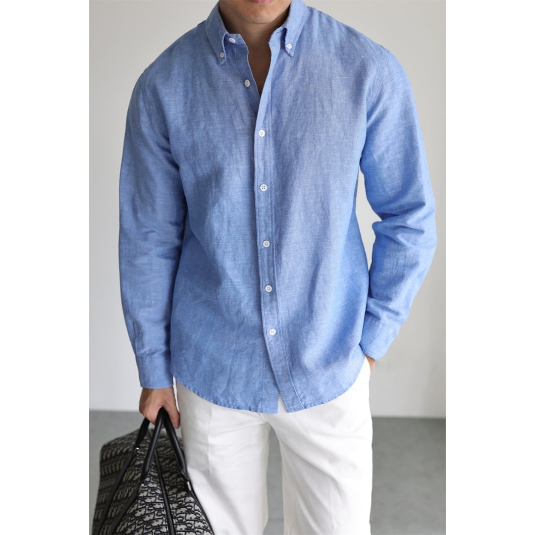 【軽やかに羽織れる、大人の定番シャツ】 リネン混ならではのナチュラルな風合いと、通気性の良さが魅力の一枚。 軽やかな着心地で、暑い時期でも快適に着用できます。 すっきりとしたシルエットながら、程よい余裕を持たせた設計。 身体に馴染む自然なラインで、ラフになりすぎず大人らしい印象に仕上がります。 一枚での着用はもちろん、軽く羽織るスタイルにも対応。 パンツを選ばず、シンプルに合わせるだけで全体のバランスが整います。 日常使いから外出まで幅広く活躍する、使い勝手の良いベーシックな一着。 LINKTHが提案する、肩の力を抜いて楽しめる大人のアメリカンカジュアルに馴染む一着です。 【サイズ】 S 肩幅:43.3cm 胸囲:104cm 着丈:74cm 袖丈:60.5cm M 肩幅:44.3cm 胸囲:108cm 着丈:76cm 袖丈:61.5cm L 肩幅:45.6cm 胸囲:112cm 着丈:78cm 袖丈:62.5cm XL 肩幅:46.8cm 胸囲:116cm 着丈:80cm 袖丈:63.5cm 2XL 肩幅:48cm 胸囲:120cm 着丈:82cm 袖丈:64.5cm 3XL 肩幅:49.2cm 胸囲:124cm 着丈:84cm 袖丈:65.5cm ※海外製品につき1〜3㎝程度の誤差がある場合がございます。 【素材・カラー】 素材 リネン・コットン カラー ブルー・サンド・グレー・ピンク・デニムブルー・ライトブルー (写真の順番) 【お届けについて】 こちらの商品は海外より直接発送となるため、ご決済から通常2〜3週間前後での発送となります。 北海道・沖縄・離島につきましては別途お時間がかかりますのでご了承ください。 ※ご注文の混雑状況や商品の在庫状況により4週間以上かかる場合もございますので予めご了承ください。 その際には、こちらからメールにてご連絡させていただきます。 【注意事項】 システムの都合上及びお取り寄せ先の状況により在庫を確保できない場合は、 ご注文をキャンセルさせていただく可能性がございます。 予めご了承ください。 輸入品の為日本製とは検品基準が異なり、新品未使用品でもごく僅かな汚れや傷がある場合がございます。 ご理解の上ご購入ください。 デバイスや撮影の環境等で実物と色合いが多少異なる場合がございます。予めご了承ください。 イメージ違いやサイズ交換等、お客様のご都合よる返品・交換は対応できかねます。 【梱包について】 環境に配慮し、簡易梱包にてお届けさせていただいております。 ※ご購入前にSHOP ABOUTを必ずお読みください。 https://official.linkth.shop/about SHOPの人気商品はこちらから https://official.linkth.shop/categories/5046793 SHOPトップページはこちらから https://official.linkth.shop/ LINKTH公式Instagramはこちらから https://www.instagram.com/linkth_official/