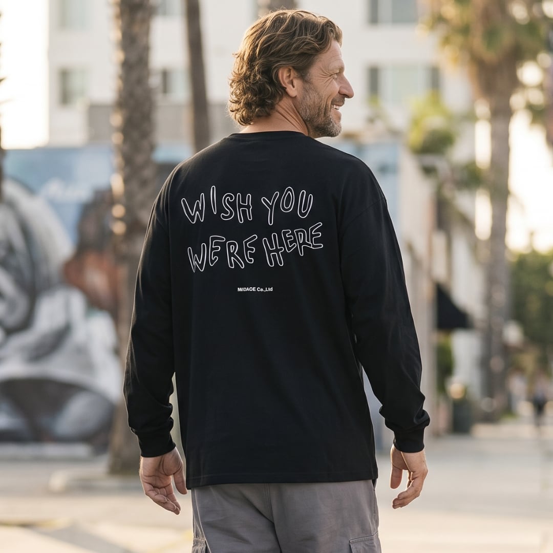 【背中で魅せるメッセージデザイン】 バックに大胆に入ったメッセージプリントが印象的な一枚。 フロントはシンプルに抑え、後ろ姿でしっかり存在感を演出。 抜け感のあるラフなフォントが、 気張りすぎない雰囲気を自然に引き出す。 ゆとりのあるシルエットで、 リラックスした着心地と程よいボリューム感。 一枚で着ても単調にならず、 動いたときに見えるバックデザインがスタイルに奥行きをプラス。 何気ない日常のスタイルに、 少し遊びを加えてくれる一着。 LINKTHが提案する、肩の力を抜いて楽しめる大人のアメリカンカジュアルに馴染む一着です。 【サイズ】 S 肩幅:47cm 胸囲:103cm 着丈:65cm 袖丈:55cm M 肩幅:50cm 胸囲:108cm 着丈:66.5cm 袖丈:56cm L 肩幅:53cm 胸囲:113cm 着丈:68cm 袖丈:57cm XL 肩幅:56cm 胸囲:118cm 着丈:71cm 袖丈:58cm 2XL 肩幅:59cm 胸囲:124cm 着丈:73cm 袖丈:59cm ※海外製品につき1〜3㎝程度の誤差がある場合がございます。 【素材・カラー】 素材 コットン カラー ブラック 【お届けについて】 こちらの商品は海外より直接発送となるため、ご決済から通常2〜3週間前後での発送となります。 北海道・沖縄・離島につきましては別途お時間がかかりますのでご了承ください。 ※ご注文の混雑状況や商品の在庫状況により4週間以上かかる場合もございますので予めご了承ください。 その際には、こちらからメールにてご連絡させていただきます。 【注意事項】 システムの都合上及びお取り寄せ先の状況により在庫を確保できない場合は、 ご注文をキャンセルさせていただく可能性がございます。 予めご了承ください。 輸入品の為日本製とは検品基準が異なり、新品未使用品でもごく僅かな汚れや傷がある場合がございます。 ご理解の上ご購入ください。 デバイスや撮影の環境等で実物と色合いが多少異なる場合がございます。予めご了承ください。 イメージ違いやサイズ交換等、お客様のご都合よる返品・交換は対応できかねます。 【梱包について】 環境に配慮し、簡易梱包にてお届けさせていただいております。 ※ご購入前にSHOP ABOUTを必ずお読みください。 https://official.linkth.shop/about SHOPの人気商品はこちらから https://official.linkth.shop/categories/5046793 SHOPトップページはこちらから https://official.linkth.shop/ LINKTH公式Instagramはこちらから https://www.instagram.com/linkth_official/