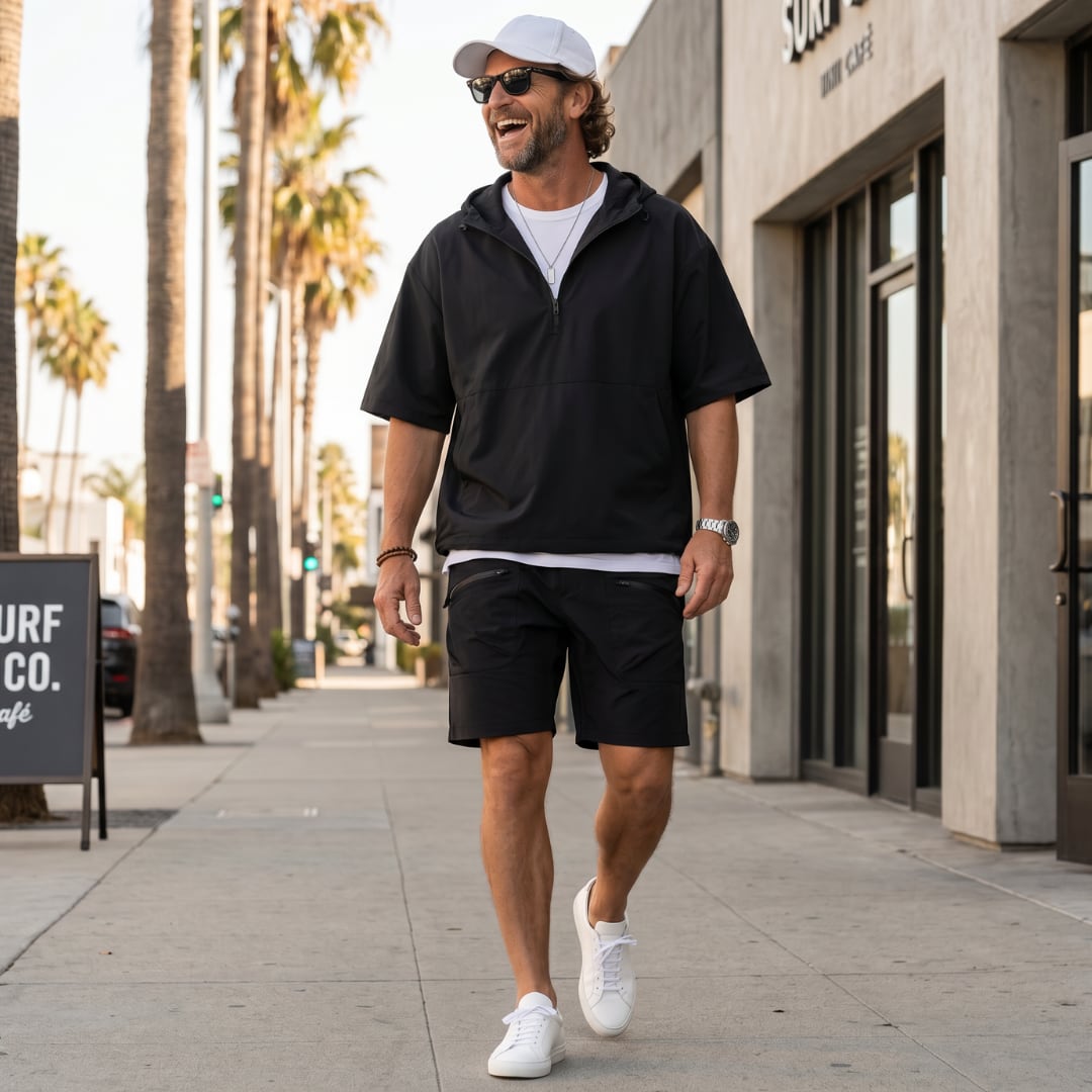 【軽さで差がつく大人のセットアップ】 トップスはハーフジップ仕様で、 開け閉めによって印象を調整できる設計。 ショーツはすっきりとした丈感で、 全体をシャープに見せながらも動きやすさを確保。 ナイロン系の軽量素材らしいハリ感があり、 体にまとわりつかず、暑い時期でも快適な着心地。 上下で合わせることで統一感が出る一方、 それぞれ単体でも使える汎用性の高さもポイント。 ラフすぎず、作り込みすぎない。 ちょうどいいバランスで仕上げた一着。 LINKTHが提案する、肩の力を抜いて楽しめる大人のアメリカンカジュアルに馴染む一着です。 【サイズ】 M 肩幅:55cm 胸囲:114cm 着丈:70cm 袖丈:21cm L 肩幅:57cm 胸囲:118cm 着丈:72cm 袖丈:21.5cm XL 肩幅:58cm 胸囲:122cm 着丈:74cm 袖丈:22cm 2XL 肩幅:59cm 胸囲:126cm 着丈:76cm 袖丈:22.5cm 3XL 肩幅:60cm 胸囲:130cm 着丈:78cm 袖丈:23cm 【サイズ】 M ウエスト:70cm ヒップ:116cm パンツ丈:48cm 裾周り:60cm L ウエスト:74cm ヒップ:120cm パンツ丈:50cm 裾周り:61cm XL ウエスト:78cm ヒップ:124cm パンツ丈:52cm 裾周り:63cm 2XL ウエスト:82cm ヒップ:128cm パンツ丈:54cm 裾周り:64cm 3XL ウエスト:86cm ヒップ:132cm パンツ丈:56cm 裾周り:65cm ※海外製品につき1〜3㎝程度の誤差がある場合がございます。 ※バラ売り不可 【素材・カラー】 素材 ポリエステル・ナイロン カラー ブラック・ブラウン 【お届けについて】 こちらの商品は海外より直接発送となるため、ご決済から通常2〜3週間前後での発送となります。 北海道・沖縄・離島につきましては別途お時間がかかりますのでご了承ください。 ※ご注文の混雑状況や商品の在庫状況により4週間以上かかる場合もございますので予めご了承ください。 その際には、こちらからメールにてご連絡させていただきます。 【注意事項】 システムの都合上及びお取り寄せ先の状況により在庫を確保できない場合は、 ご注文をキャンセルさせていただく可能性がございます。 予めご了承ください。 輸入品の為日本製とは検品基準が異なり、新品未使用品でもごく僅かな汚れや傷がある場合がございます。 ご理解の上ご購入ください。 デバイスや撮影の環境等で実物と色合いが多少異なる場合がございます。予めご了承ください。 イメージ違いやサイズ交換等、お客様のご都合よる返品・交換は対応できかねます。 【梱包について】 環境に配慮し、簡易梱包にてお届けさせていただいております。 ※ご購入前にSHOP ABOUTを必ずお読みください。 https://official.linkth.shop/about LINKTH人気商品はこちらから https://official.linkth.shop/categories/5046793 LINKTHトップページはこちらから https://official.linkth.shop/ LINKTH公式Instagramはこちらから https://www.instagram.com/linkth_official/