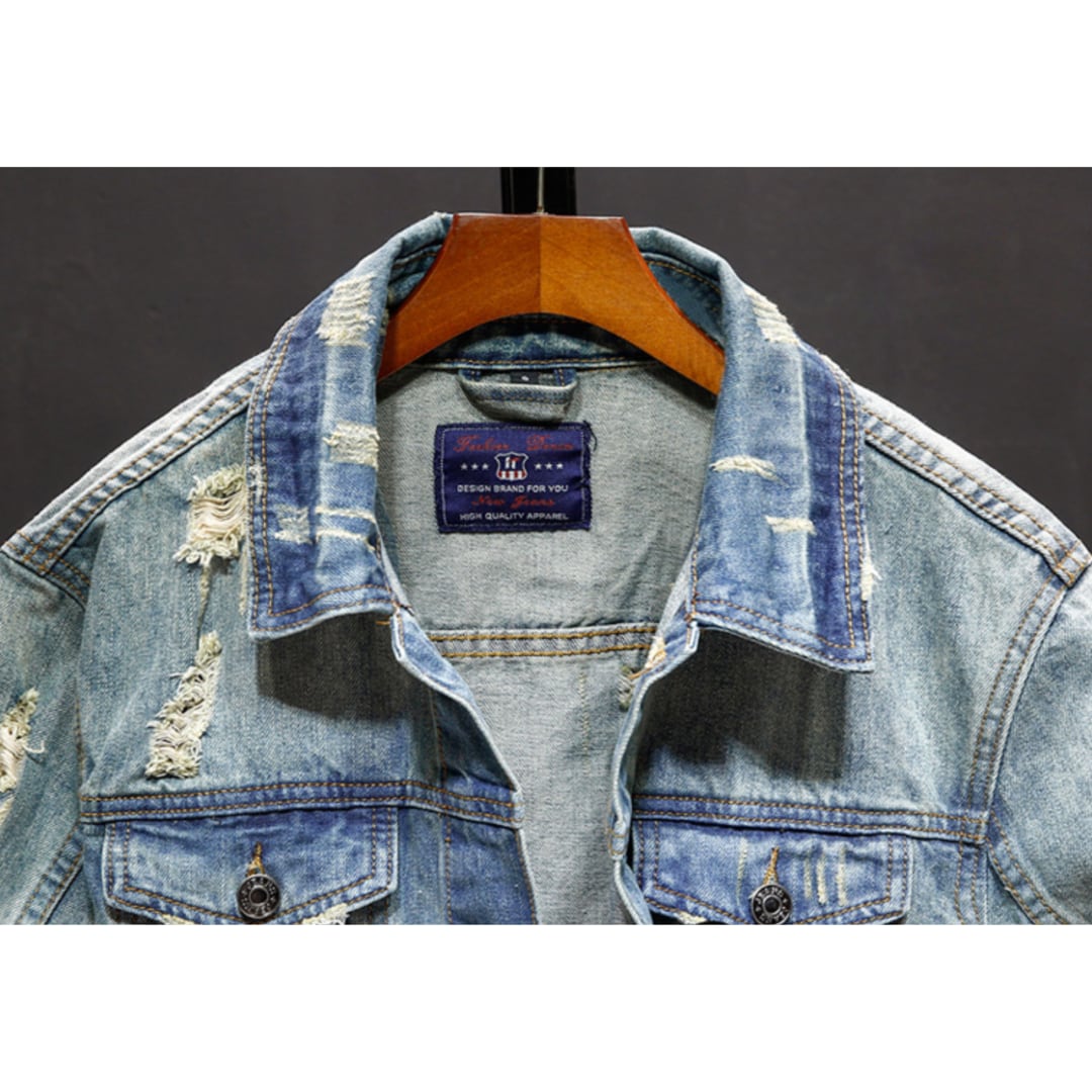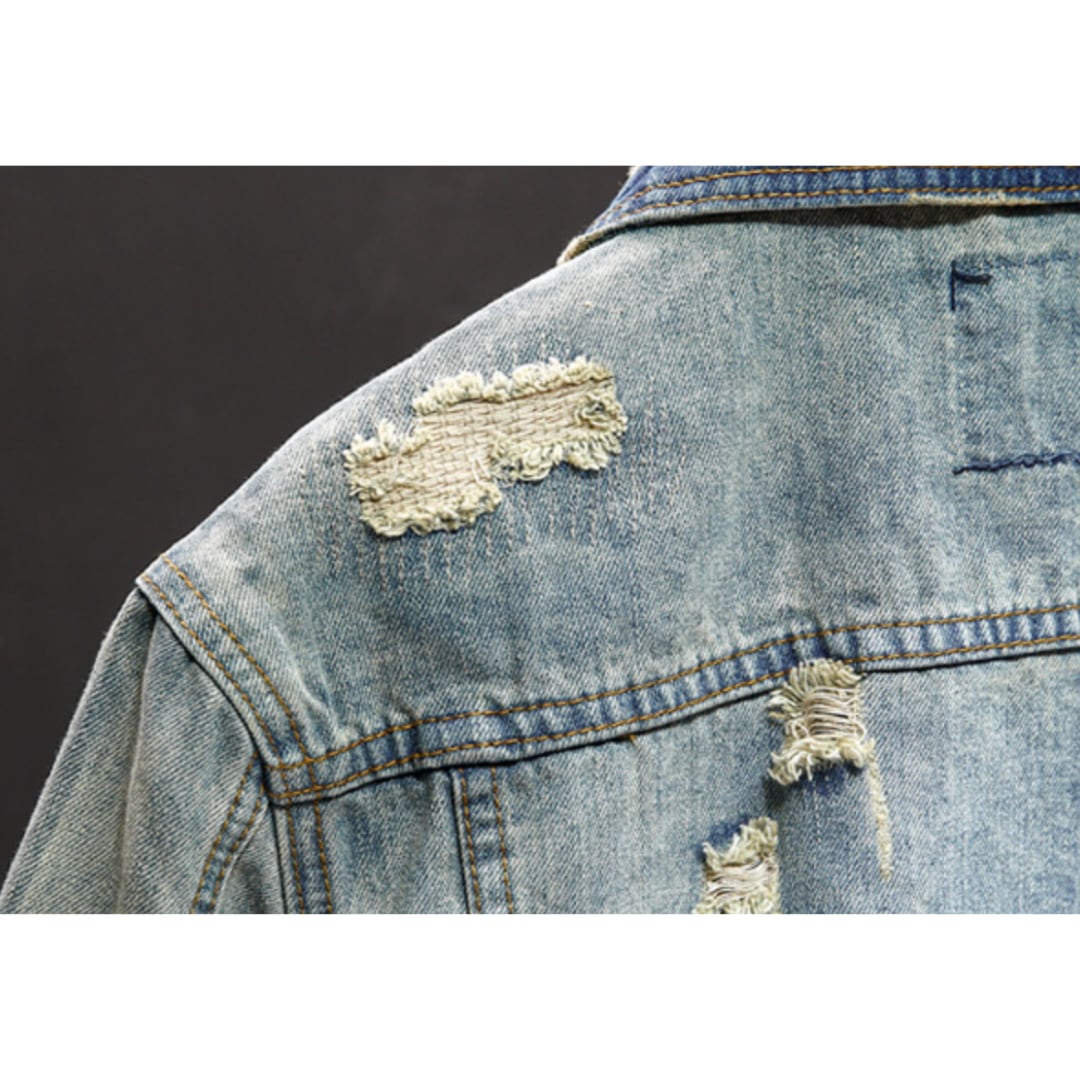 【一点一点異なる表情を楽しめる、こだわりのダメージデニム】 自然な色落ちと計算されたダメージ加工が魅力のデニムジャケット。 着込むほどに味が増すヴィンテージライクな風合いで、スタイリングに奥行きを与えます。 程よくゆとりを持たせたシルエットで、インナーを選ばず幅広いコーディネートに対応。 Tシャツ、スウェット、ニットまで合わせやすく、シーズンを問わず活躍する万能アウターです。 羽織るだけでこなれた雰囲気を演出でき、大人のカジュアルスタイルを格上げします。 LINKTHが提案する、肩の力を抜いて楽しめる大人のアメリカンカジュアルに馴染む一着です。 【サイズ】 M 着丈:63.5cm 胸囲:98cm 袖丈:60cm 肩幅:42cm L 着丈:65cm 胸囲:102cm 袖丈:61cm 肩幅:43.5cm XL 着丈:66.5cm 胸囲:105cm 袖丈:62cm 肩幅:43cm 2XL 着丈:68cm 胸囲:108cm 袖丈:63cm 肩幅:45cm 3XL 着丈:69.5cm 胸囲:112cm 袖丈:64cm 肩幅:46.5cm 4XL 着丈:71cm 胸囲:116cm 袖丈:65cm 肩幅:48.cm 5XL 着丈:72.5cm 胸囲:120cm 袖丈:66cm 肩幅:49.5cm ※海外製品につき1〜3㎝程度の誤差がある場合がございます。 ※ロットによって寸法が若干小さめとなっております。 【素材・カラー】 素材 コットン・ポリエステル カラー ブルー 【お届けについて】 こちらの商品は海外より直接発送となるため、ご決済から通常2〜3週間前後での発送となります。 北海道・沖縄・離島につきましては別途お時間がかかりますのでご了承ください。 ※ご注文の混雑状況や商品の在庫状況により4週間以上かかる場合もございますので予めご了承ください。 その際には、こちらからメールにてご連絡させていただきます。 【注意事項】 システムの都合上及びお取り寄せ先の状況により在庫を確保できない場合は、 ご注文をキャンセルさせていただく可能性がございます。 予めご了承ください。 輸入品の為日本製とは検品基準が異なり、新品未使用品でもごく僅かな汚れや傷がある場合がございます。 ご理解の上ご購入ください。 デバイスや撮影の環境等で実物と色合いが多少異なる場合がございます。予めご了承ください。 イメージ違いやサイズ交換等、お客様のご都合よる返品・交換は対応できかねます。 在庫の関係等で仕入れ工場が変更になる場合、表記サイズと若干異なることがございます。 【梱包について】 環境に配慮し、簡易梱包にてお届けさせていただいております。 ※ご購入前にSHOP ABOUTを必ずお読みください。 https://arashi2.theshop.jp/about