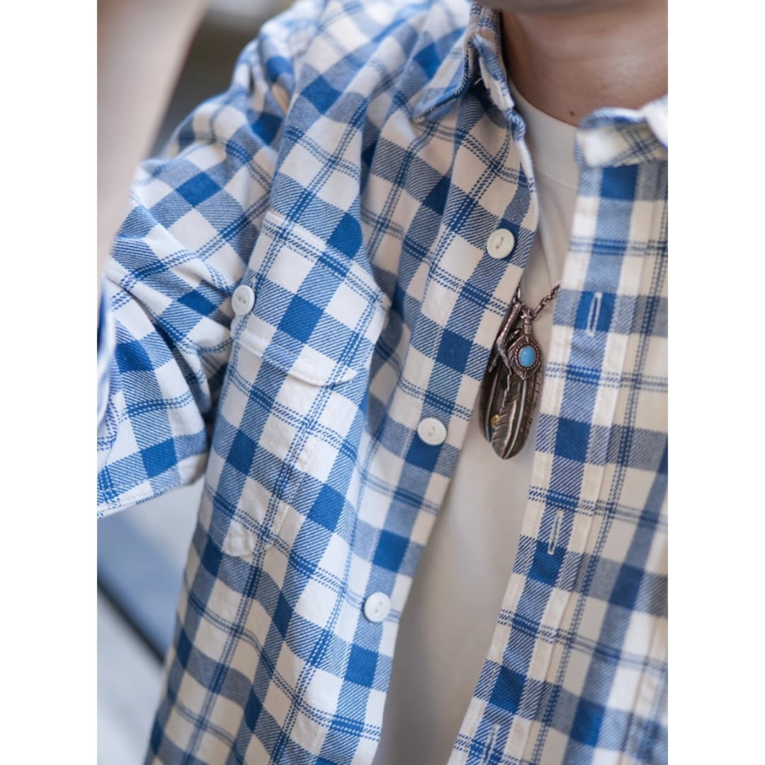 【爽やかさと無骨さのバランス】 ブルー×ホワイトの王道チェック。 清潔感とアメリカンカジュアルの雰囲気を両立。 程よくゆとりのあるシルエットで、 一枚でも羽織りでも自然に決まる万能シャツ。 デニム・チノ・カーゴと相性抜群。 季節を問わず使える定番アイテム。 LINKTHが提案する、力の抜けた大人のアメリカンスタイル。 【サイズ】 S 肩幅:47cm 胸囲:106cm 着丈:70cm 袖丈:60cm M 肩幅:49cm 胸囲:110cm 着丈:72cm 袖丈:61cm L 肩幅:51cm 胸囲:114cm 着丈:74cm 袖丈:62cm XL 肩幅:53cm 胸囲:118cm 着丈:76cm 袖丈:63cm 2XL 肩幅:55cm 胸囲:122cm 着丈:78cm 袖丈:64cm ※海外製品につき1〜3㎝程度の誤差がある場合がございます。 【素材・カラー】 素材 コットン カラー ブルー 【お届けについて】 こちらの商品は海外より直接発送となるため、ご決済から通常2〜3週間前後での発送となります。 北海道・沖縄・離島につきましては別途お時間がかかりますのでご了承ください。 ※ご注文の混雑状況や商品の在庫状況により4週間以上かかる場合もございますので予めご了承ください。 その際には、こちらからメールにてご連絡させていただきます。 【注意事項】 システムの都合上及びお取り寄せ先の状況により在庫を確保できない場合は、 ご注文をキャンセルさせていただく可能性がございます。 予めご了承ください。 輸入品の為日本製とは検品基準が異なり、新品未使用品でもごく僅かな汚れや傷がある場合がございます。 ご理解の上ご購入ください。 デバイスや撮影の環境等で実物と色合いが多少異なる場合がございます。予めご了承ください。 イメージ違いやサイズ交換等、お客様のご都合よる返品・交換は対応できかねます。 【梱包について】 環境に配慮し、簡易梱包にてお届けさせていただいております。 ※ご購入前にSHOP ABOUTを必ずお読みください。 https://official.linkth.shop/about