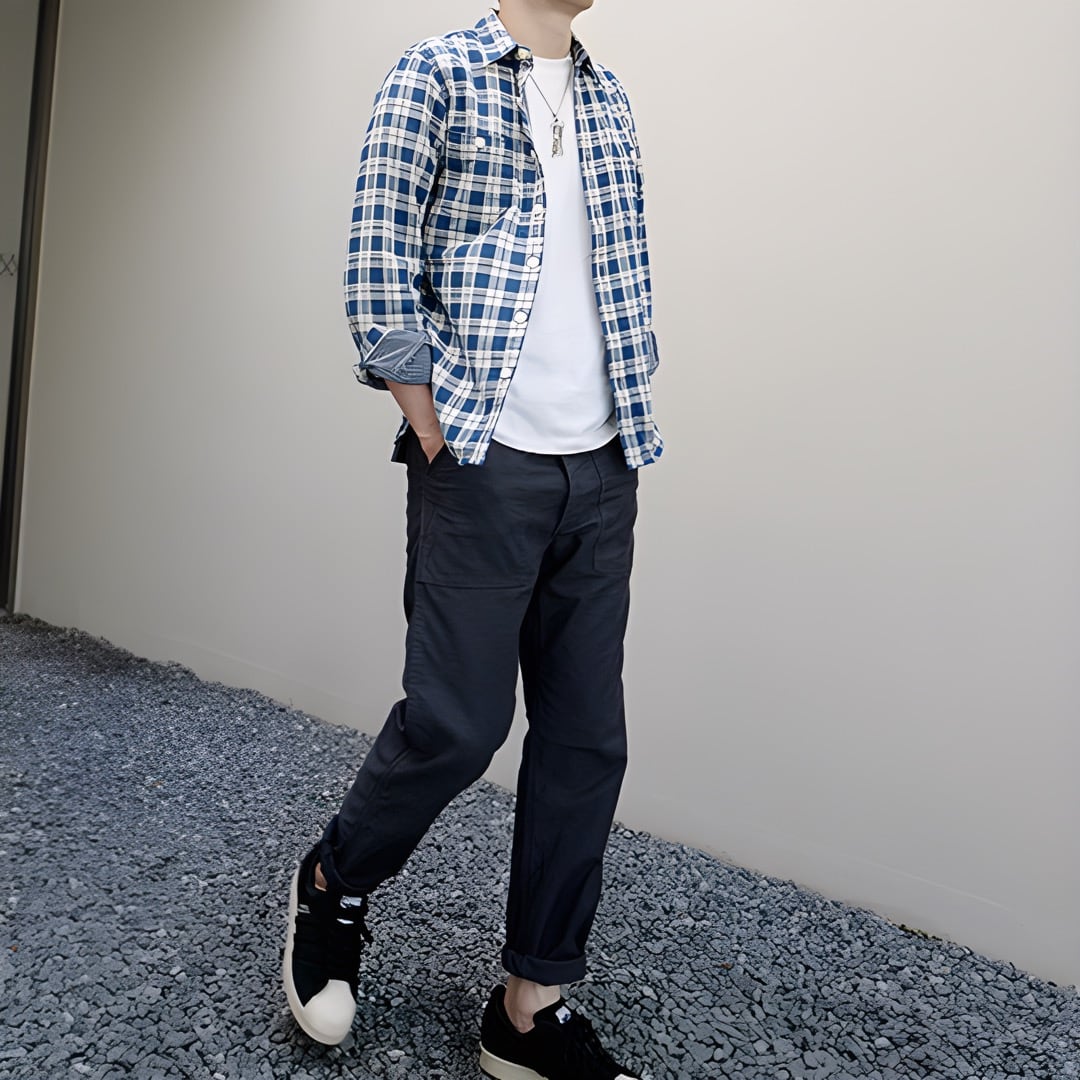 【表情で差がつくチェック】 異なるチェックパターンを組み合わせた、 存在感のあるワークテイストシャツ。 クラシックな配色と程よくラフな雰囲気が、 一枚でもレイヤードでも映えるバランス。 しっかりとした生地感で季節を問わず着用可能。 デニムやチノと合わせるだけで雰囲気が整う一着。 LINKTHが提案する、力を抜いたアメリカンカジュアル。 【サイズ】 S 肩幅:41cm 胸囲:98cm 着丈:67cm 袖丈:61cm M 肩幅:43cm 胸囲:102cm 着丈:69cm 袖丈:62cm L 肩幅:45cm 胸囲:106cm 着丈:71cm 袖丈:63cm XL 肩幅:47cm 胸囲:110cm 着丈:73cm 袖丈:64cm 2XL 肩幅:49cm 胸囲:114cm 着丈:75cm 袖丈:65cm ※海外製品につき1〜3㎝程度の誤差がある場合がございます。 【素材・カラー】 素材 コットン カラー ブルー 【お届けについて】 こちらの商品は海外より直接発送となるため、ご決済から通常2〜3週間前後での発送となります。 北海道・沖縄・離島につきましては別途お時間がかかりますのでご了承ください。 ※ご注文の混雑状況や商品の在庫状況により4週間以上かかる場合もございますので予めご了承ください。 その際には、こちらからメールにてご連絡させていただきます。 【注意事項】 システムの都合上及びお取り寄せ先の状況により在庫を確保できない場合は、 ご注文をキャンセルさせていただく可能性がございます。 予めご了承ください。 輸入品の為日本製とは検品基準が異なり、新品未使用品でもごく僅かな汚れや傷がある場合がございます。 ご理解の上ご購入ください。 デバイスや撮影の環境等で実物と色合いが多少異なる場合がございます。予めご了承ください。 イメージ違いやサイズ交換等、お客様のご都合よる返品・交換は対応できかねます。 【梱包について】 環境に配慮し、簡易梱包にてお届けさせていただいております。 ※ご購入前にSHOP ABOUTを必ずお読みください。 https://official.linkth.shop/about SHOPの人気商品はこちらから https://official.linkth.shop/categories/5046793 SHOPトップページはこちらから https://official.linkth.shop/ LINKTH公式Instagramはこちらから https://www.instagram.com/linkth_official/
