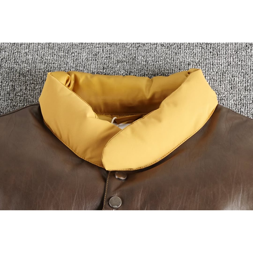 【無骨さと上質を融合した大人の一着】 肩ヨークにレザーを使用した切替デザイン。 クラシックなアメリカンアウトドアの雰囲気。 中綿入りで軽く暖かい快適な着用感。 秋冬のレイヤードに最適な実用性。 程よくゆとりのあるシルエット。 ニットやスウェットの上からも自然に着用可能。 フロントスナップ仕様で着脱もスムーズ。 タウンからアウトドアまで幅広く対応。 LINKTHが提案する、無骨さと品を両立したアメリカンスタイル。 【サイズ】 M 肩幅: 48cm 胸囲: 128cm 着丈: 74cm L 肩幅: 49cm 胸囲: 132cm 着丈: 76cm XL 肩幅: 51cm 胸囲: 136cm 着丈: 78cm 2XL 肩幅: 52cm 胸囲: 140cm 着丈: 80cm ※海外製品につき1〜3㎝程度の誤差がある場合がございます。 【素材・カラー】 素材 PU カラー ライトブルー・グリーン・レッド・ブラウン・ネイビー・イエロー 【お届けについて】 こちらの商品は海外より直接発送となるため、ご決済から通常2〜3週間前後での発送となります。 北海道・沖縄・離島につきましては別途お時間がかかりますのでご了承ください。 ※ご注文の混雑状況や商品の在庫状況により4週間以上かかる場合もございますので予めご了承ください。 その際には、こちらからメールにてご連絡させていただきます。 【注意事項】 システムの都合上及びお取り寄せ先の状況により在庫を確保できない場合は、 ご注文をキャンセルさせていただく可能性がございます。 予めご了承ください。 輸入品の為日本製とは検品基準が異なり、新品未使用品でもごく僅かな汚れや傷がある場合がございます。 ご理解の上ご購入ください。 デバイスや撮影の環境等で実物と色合いが多少異なる場合がございます。予めご了承ください。 イメージ違いやサイズ交換等、お客様のご都合よる返品・交換は対応できかねます。 【梱包について】 環境に配慮し、簡易梱包にてお届けさせていただいております。 ※ご購入前にSHOP ABOUTを必ずお読みください。 https://official.linkth.shop/about SHOPの人気商品はこちらから https://official.linkth.shop/categories/5046793 SHOPトップページはこちらから https://official.linkth.shop/ LINKTH公式Instagramはこちらから https://www.instagram.com/linkth_official/