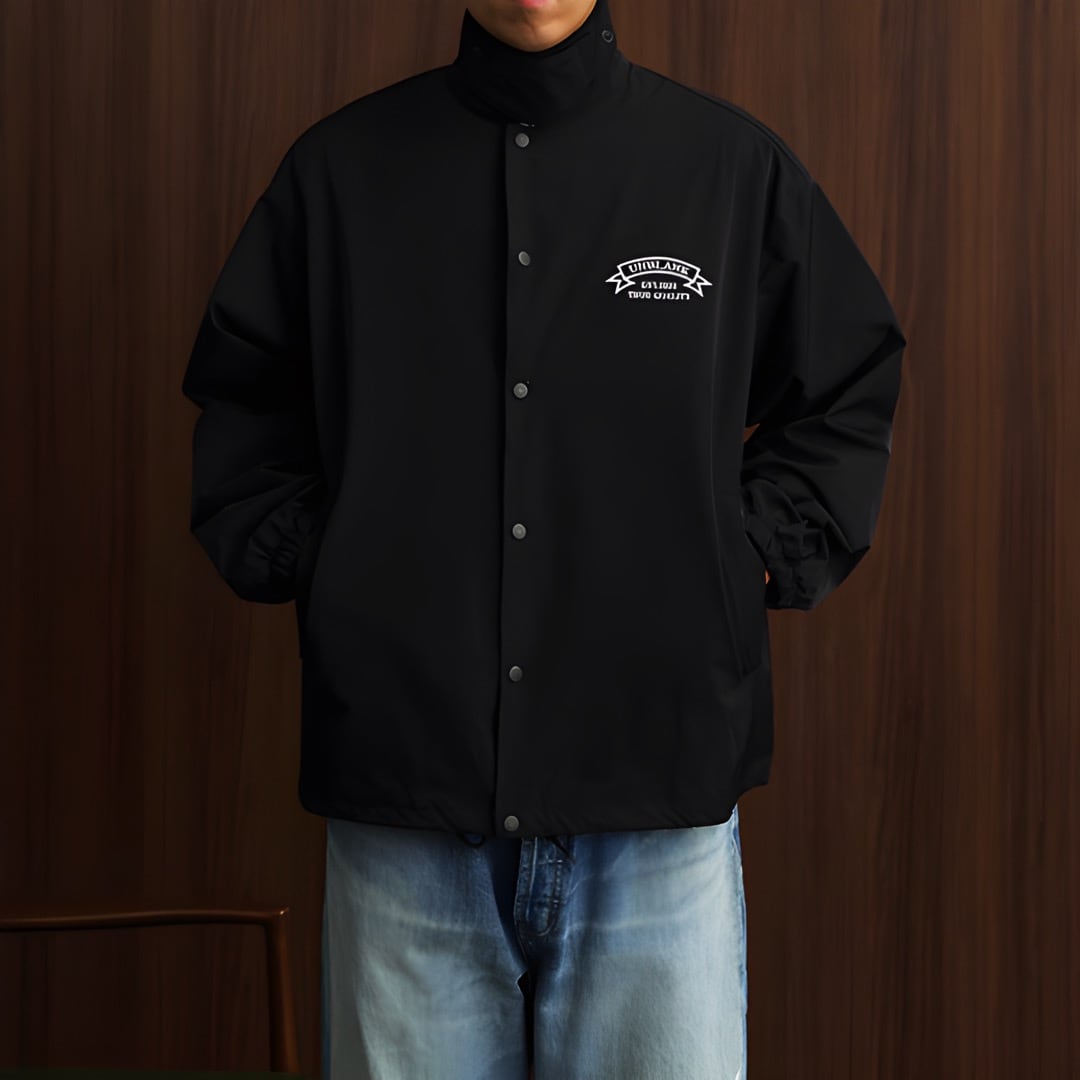 無駄を削ぎ落としたミニマルデザインと、首元をスマートに演出するスタンドカラー仕様が特徴のコーチジャケット。